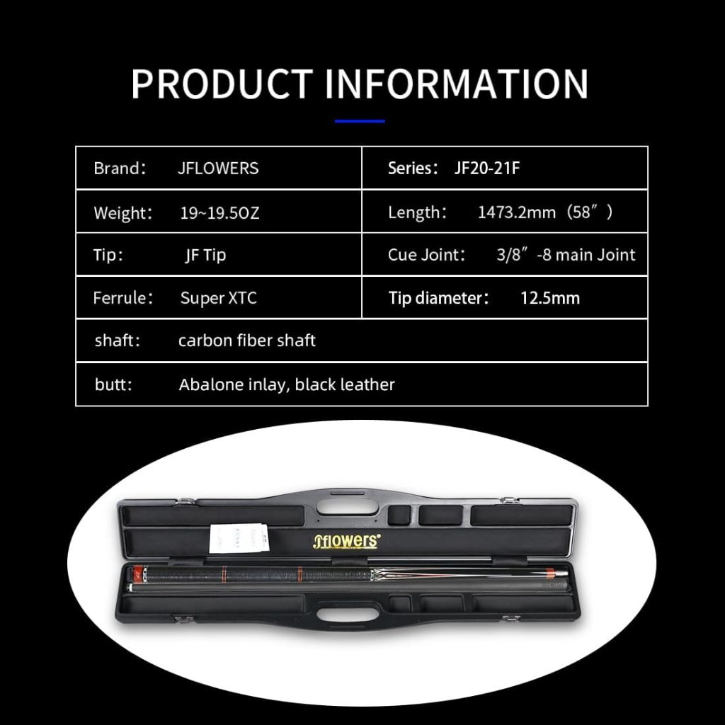 Jflowers JF20-21F Stick Billiard Shaft Carbon Play Low Deflection 12.5mm Ebony Wood Juma Inlay