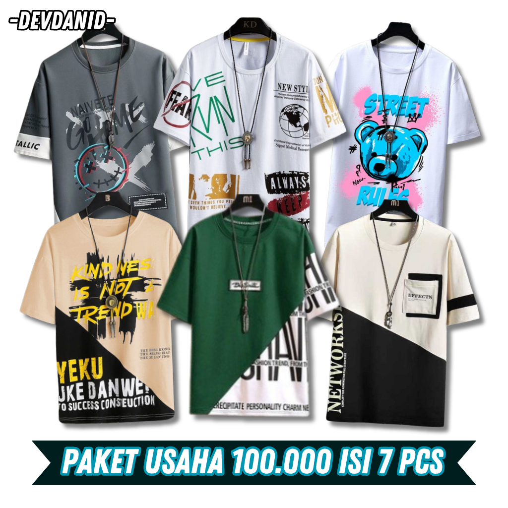 Paket 100rb dapat 6 pcs / pria wanita unisex / Kaos motif Distro