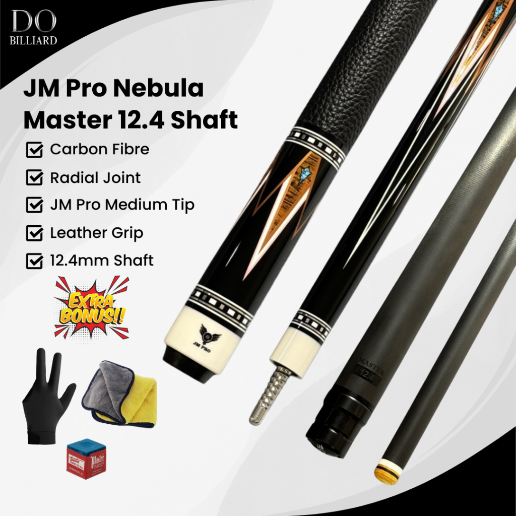Stick Billiard JM PRO NEBULA Master 12.4 Carbon Shaft Cue Leather Grip Low Deflection / Stick JM Pro Nebula Master 12.4mm Shaft