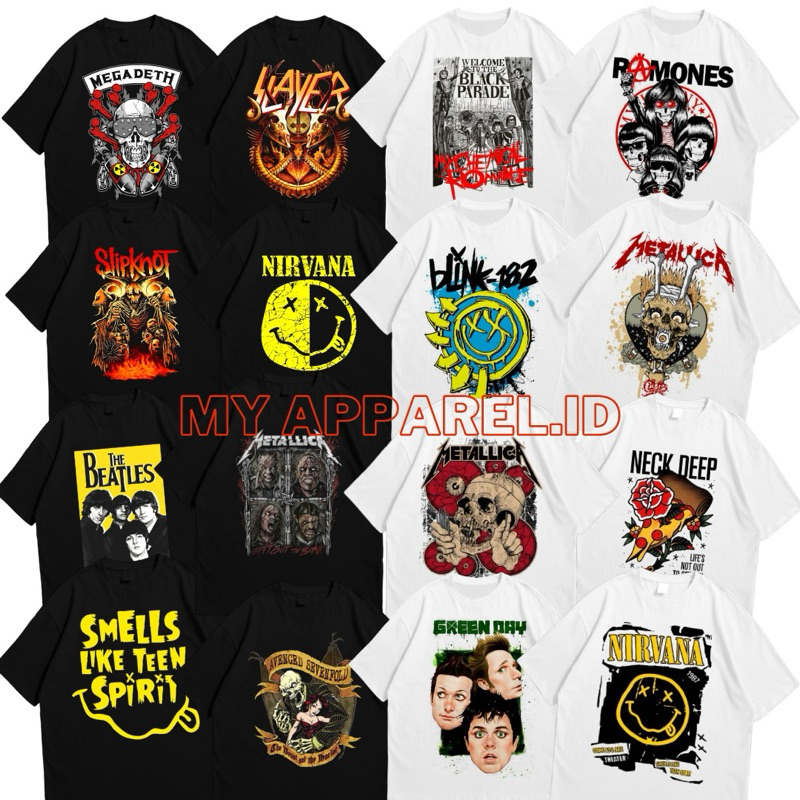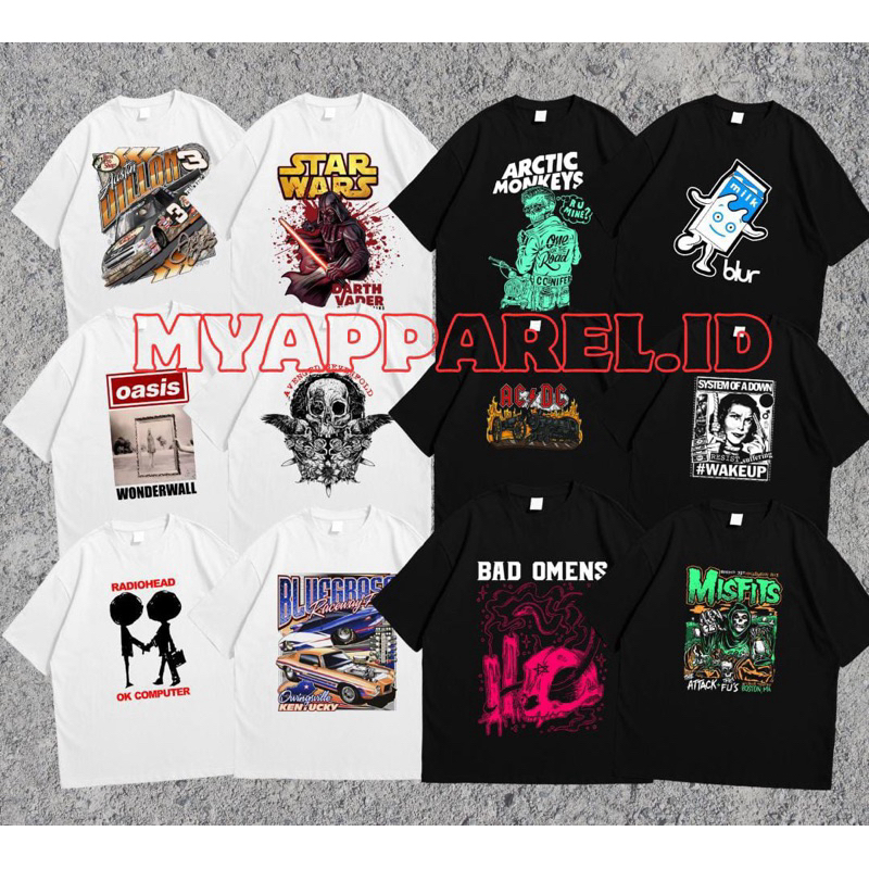 Kaos Pria Distro Lengan Pendek 4 Pcs Motif Band - MyApparel.ID