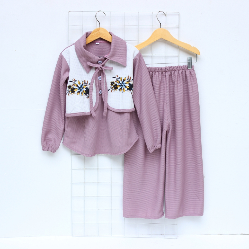 Setelan Anak Perempuan Galeriaika Model Khaira Bahan Knit Waffel 3-12 Tahun
