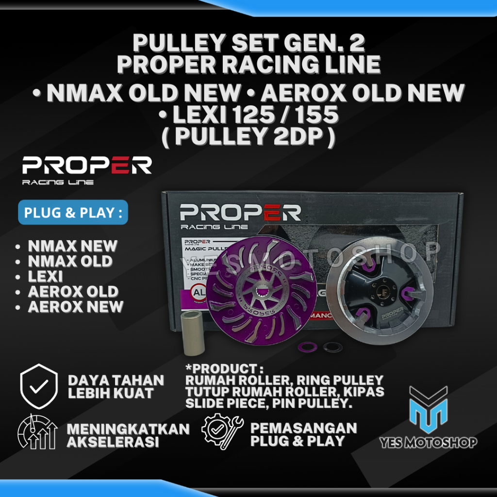 PAKET UPGRADE CVT PROPER RACING LINE NMAX AEROX LEXI PULLEY SET MANGKOK KAMPAS GANDA ROLLER PER CVT