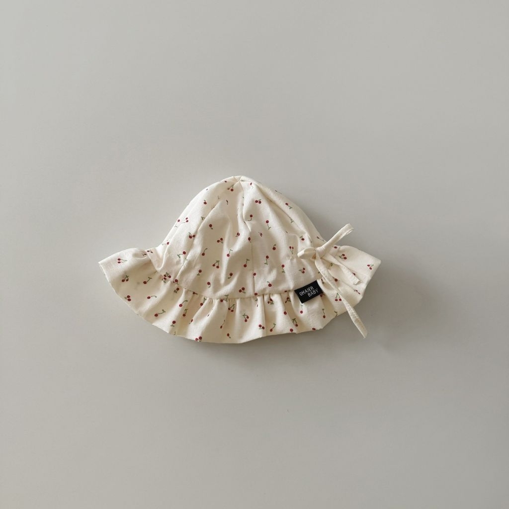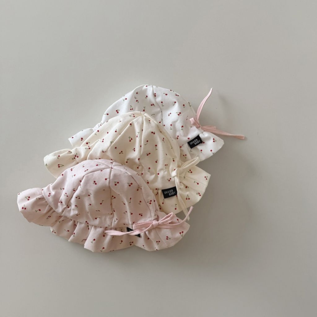 Topi Anak Perempuan Lucu Import / Topi Bayi Motif Cherry Ruffle Ribbon