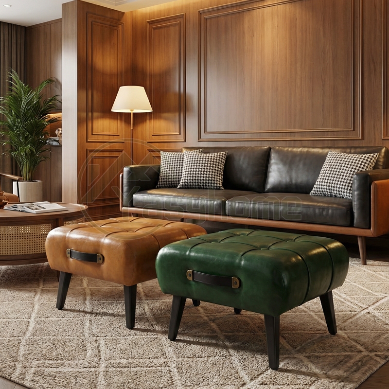 Kursi Stool Sofa Minimalis / Bangku Kulit / Kotak Bangku Sofa Kursi Minimalis / Sofa Kaki Besi / Sofa Stool Bulat ljc