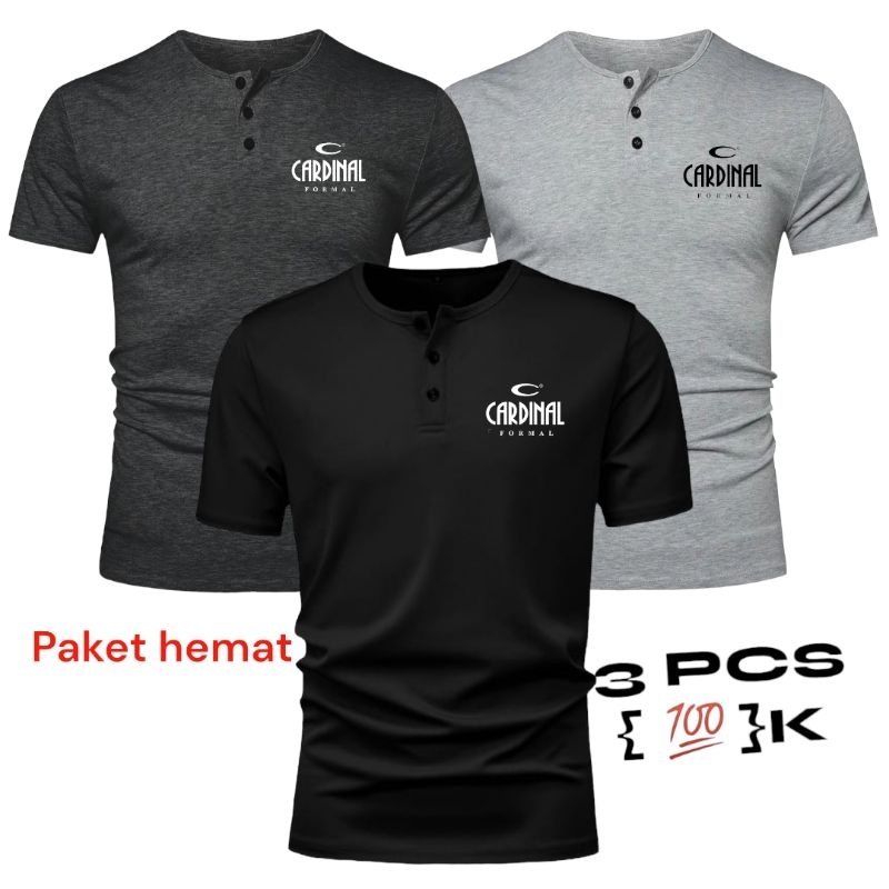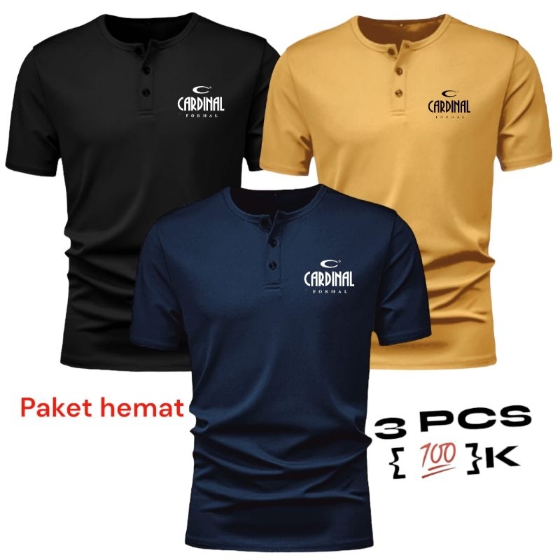 PAKET HEMAT 3 PCS KAOS SABLON /KAOS KANCING PRIA LENGAN PENDEK /KAOS LOGO CR /KAOS PRIA /KAOS DISTRO /KAOS