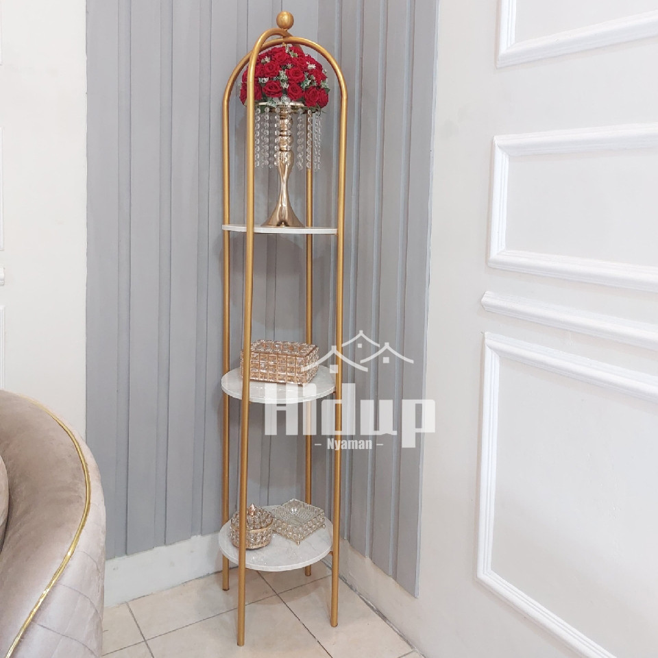Rak Sangkar Burung Gold Minimalis Rak Serbaguna Rak Sudut Ruang Tamu Rak Sudut Gold