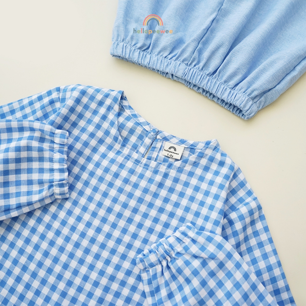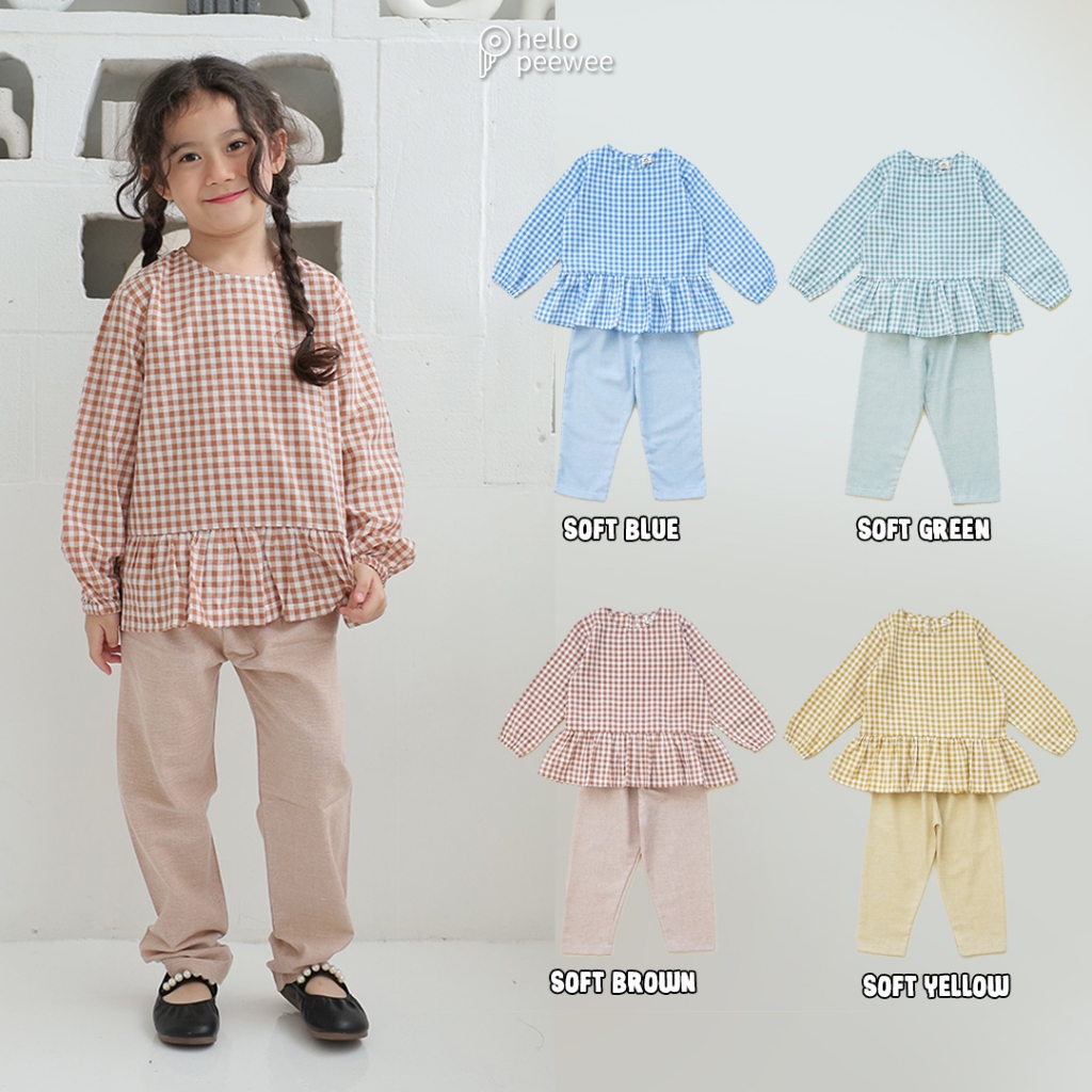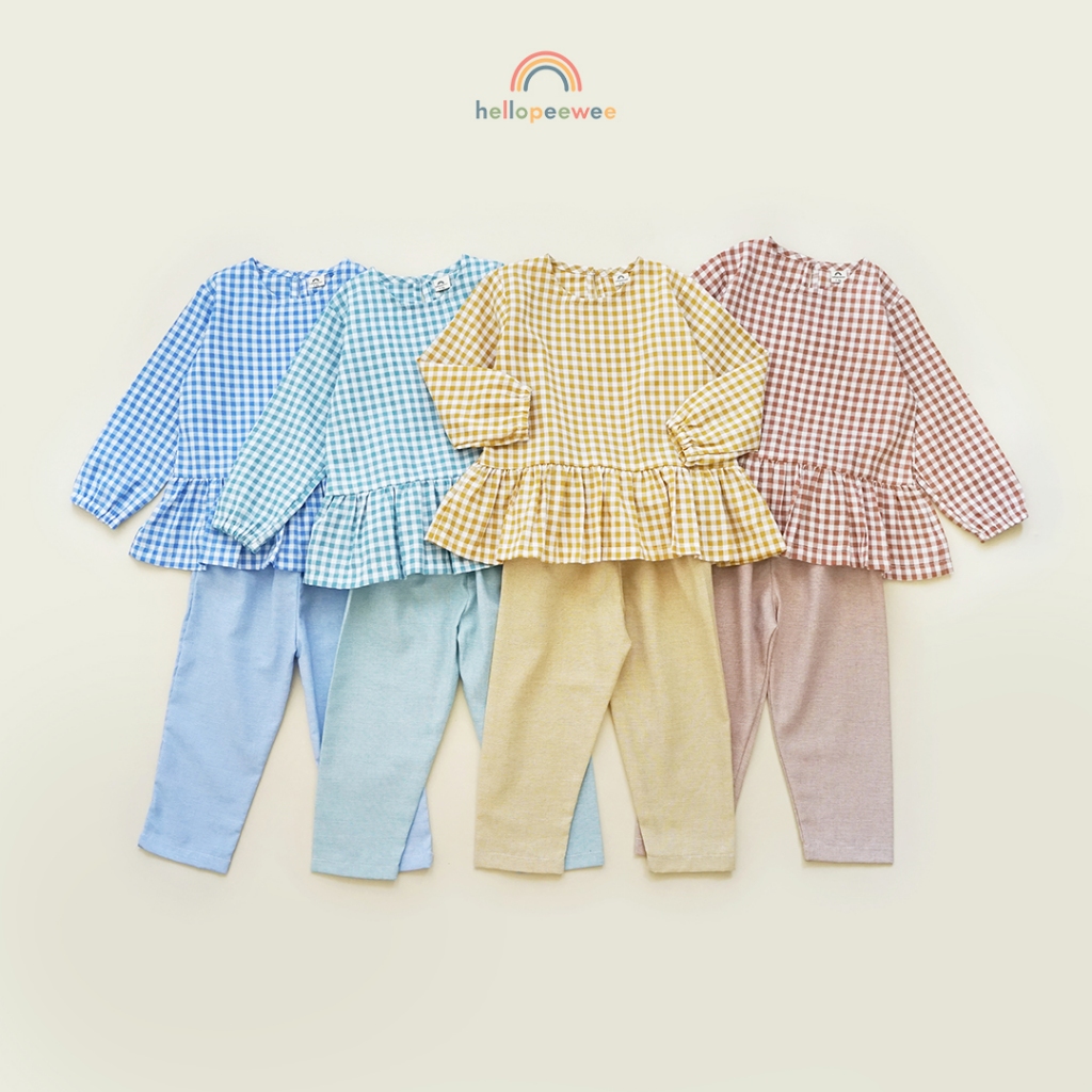 Set Tunik Anak Perempuan Peewee Baju Setelan Kotak Gingham 1-12 Tahun