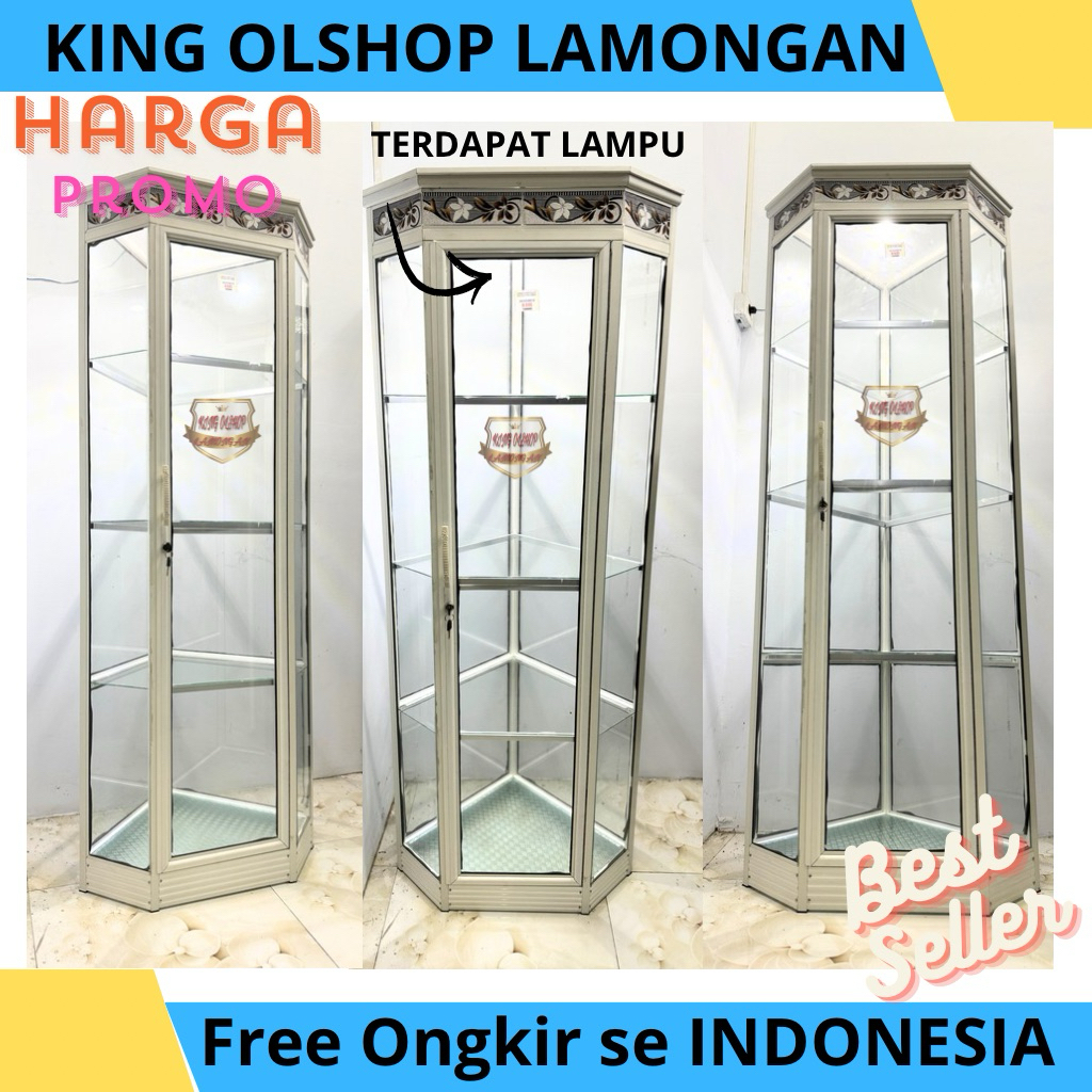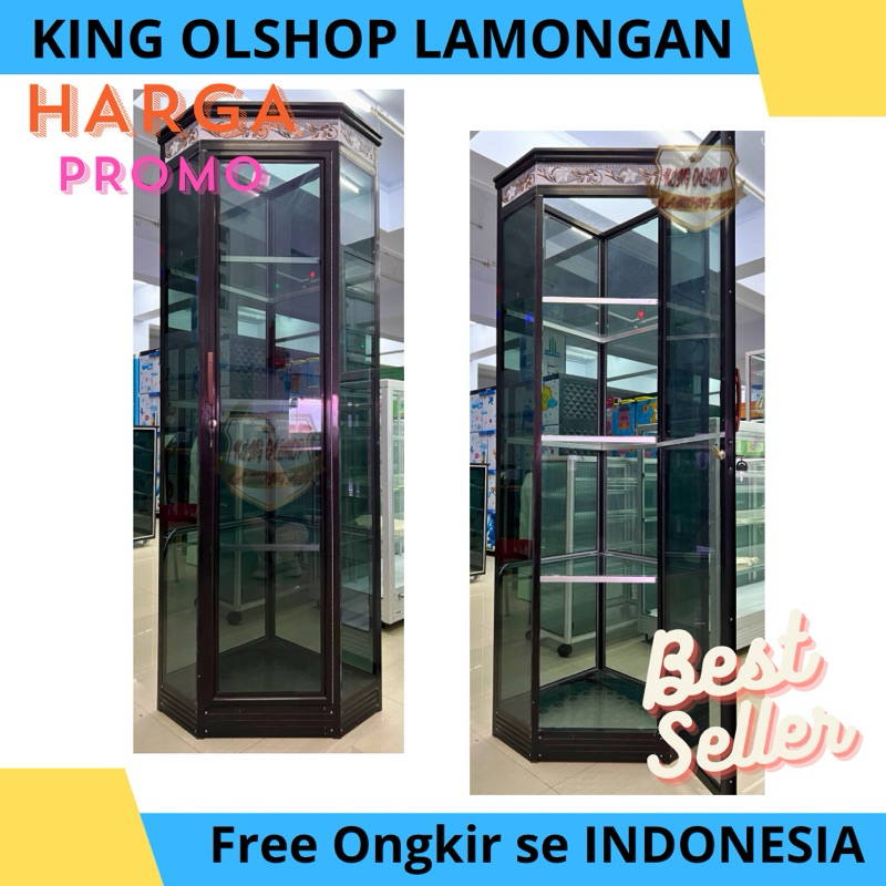 Lemari Almini Aluminium Rak Hias Sudut Spandril dan Roda MW Polos Putih / Hitam / Piala [LAMONGAN]