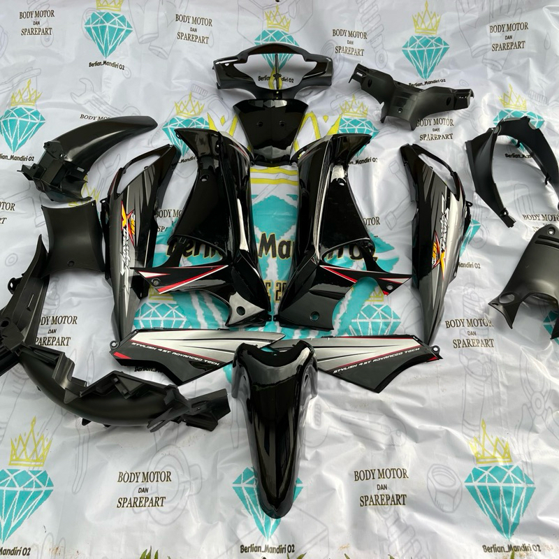 COVER FULL SETT BODY HALUS KASAR SUPRA X 125 OLD LAMA HITAM PLUS STRIPING