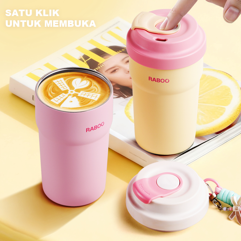 RABOO Tumbler Kopi Macaron 450ML , Satu-Klik untuk Buka, SUS 316 Stainless, Gelas Trendi dan Praktis dibawa - BERRY
