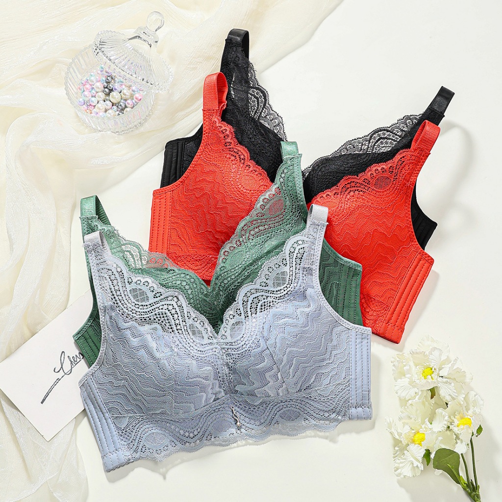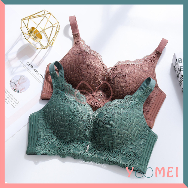 YOOMEI Bra Wanita Brukat Anti Gatal Cup Besar Busa Tebal Tanpa Kawat Bh Renda Push Up Premium