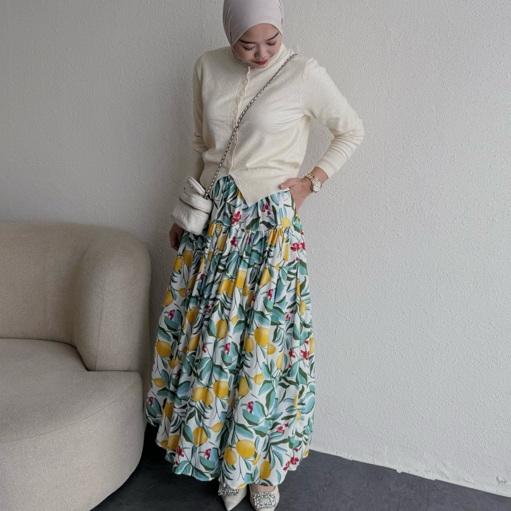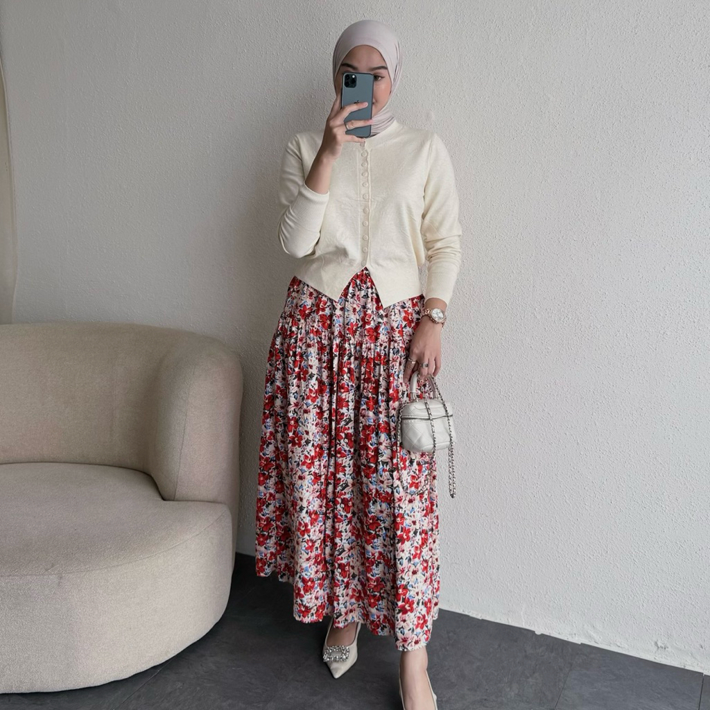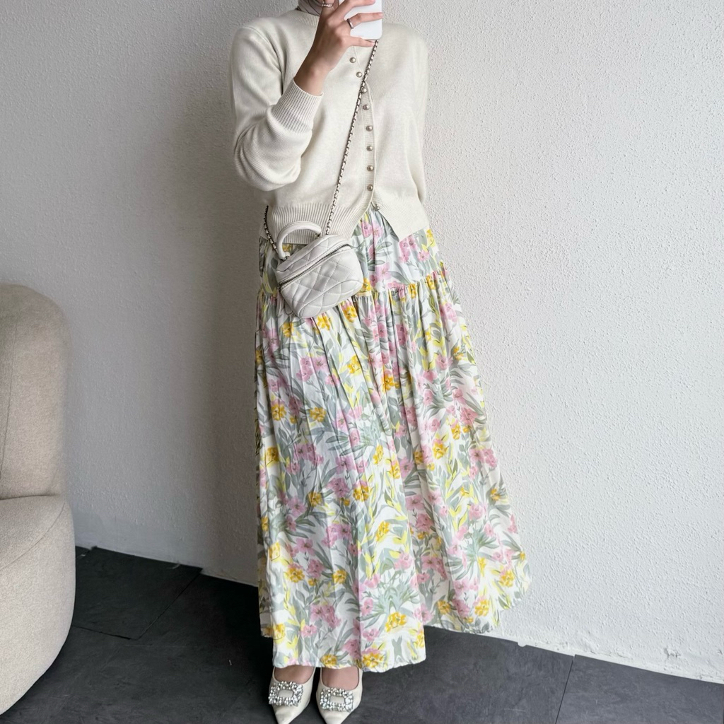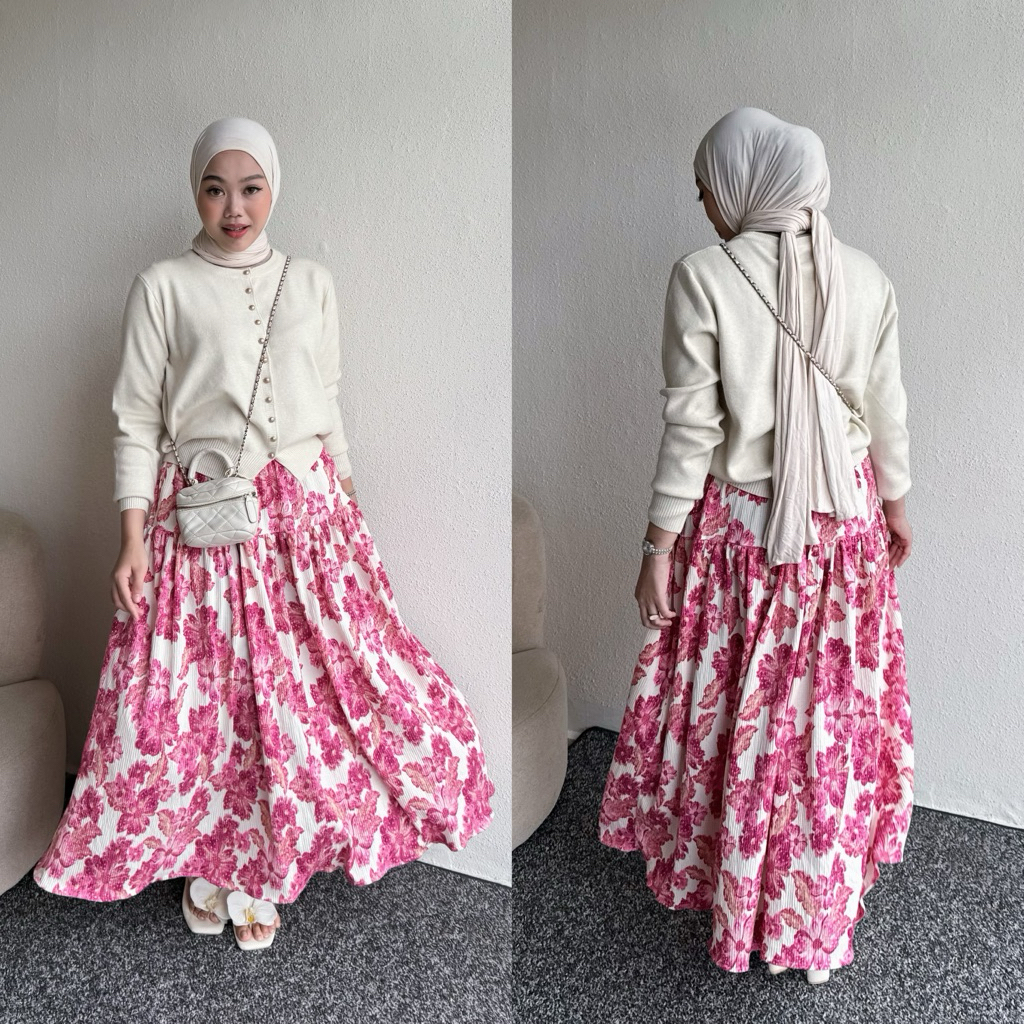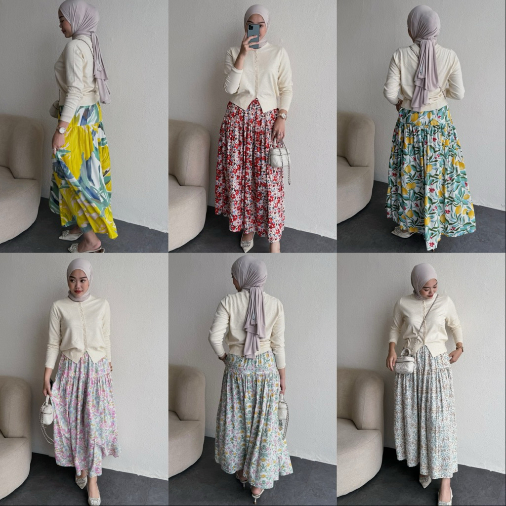 Rok Bunga Flowy Gardenia Skirt Floral Id Bahan Rayon Adem Rok Panjang Korean Style Rok Rempel Kekinian Full Karet