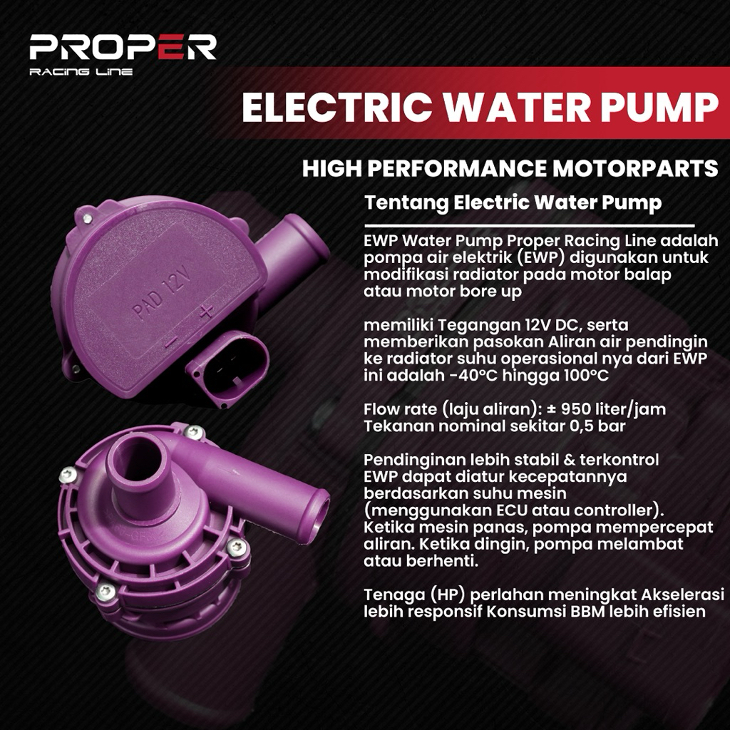 EWP Radiator PROPER RACING LINE Universal EWP PROPER UNIVERSAL Elektrik Waterpump Proper Racing Line