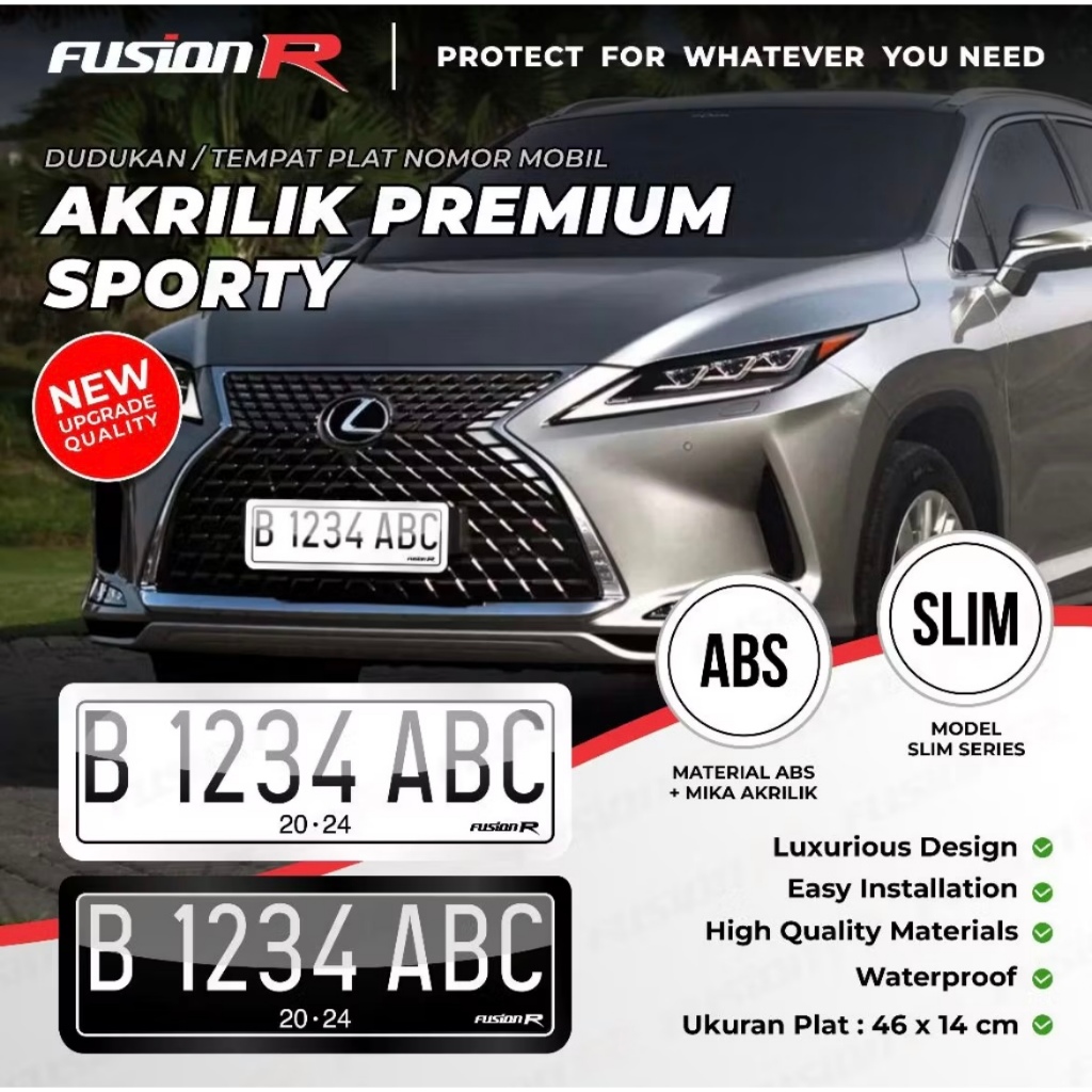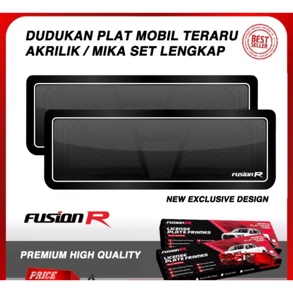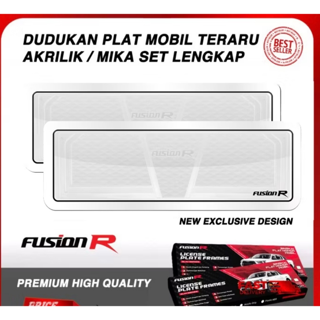 Fusion R Tempat Dudukan Plat Nomor Eceran Mobil Putih Hitam Akrilik Mika Frame Premium