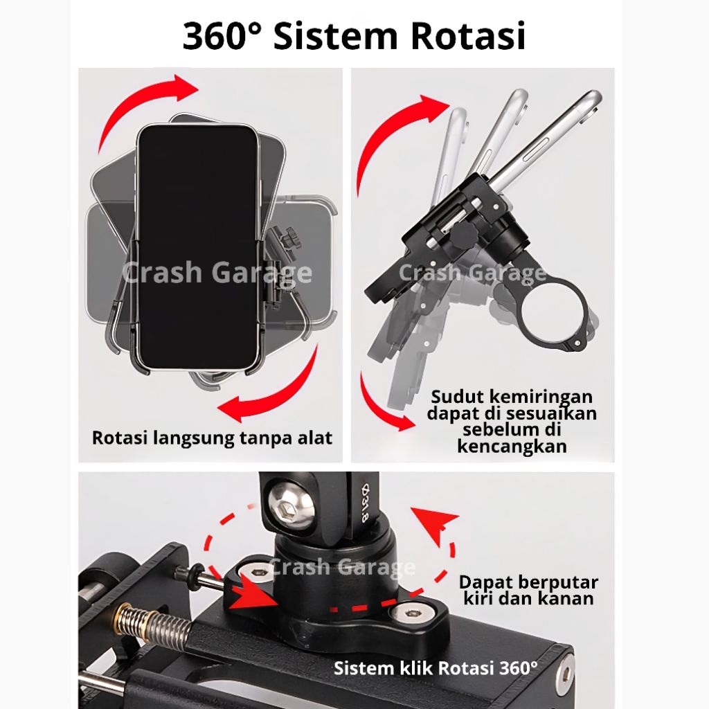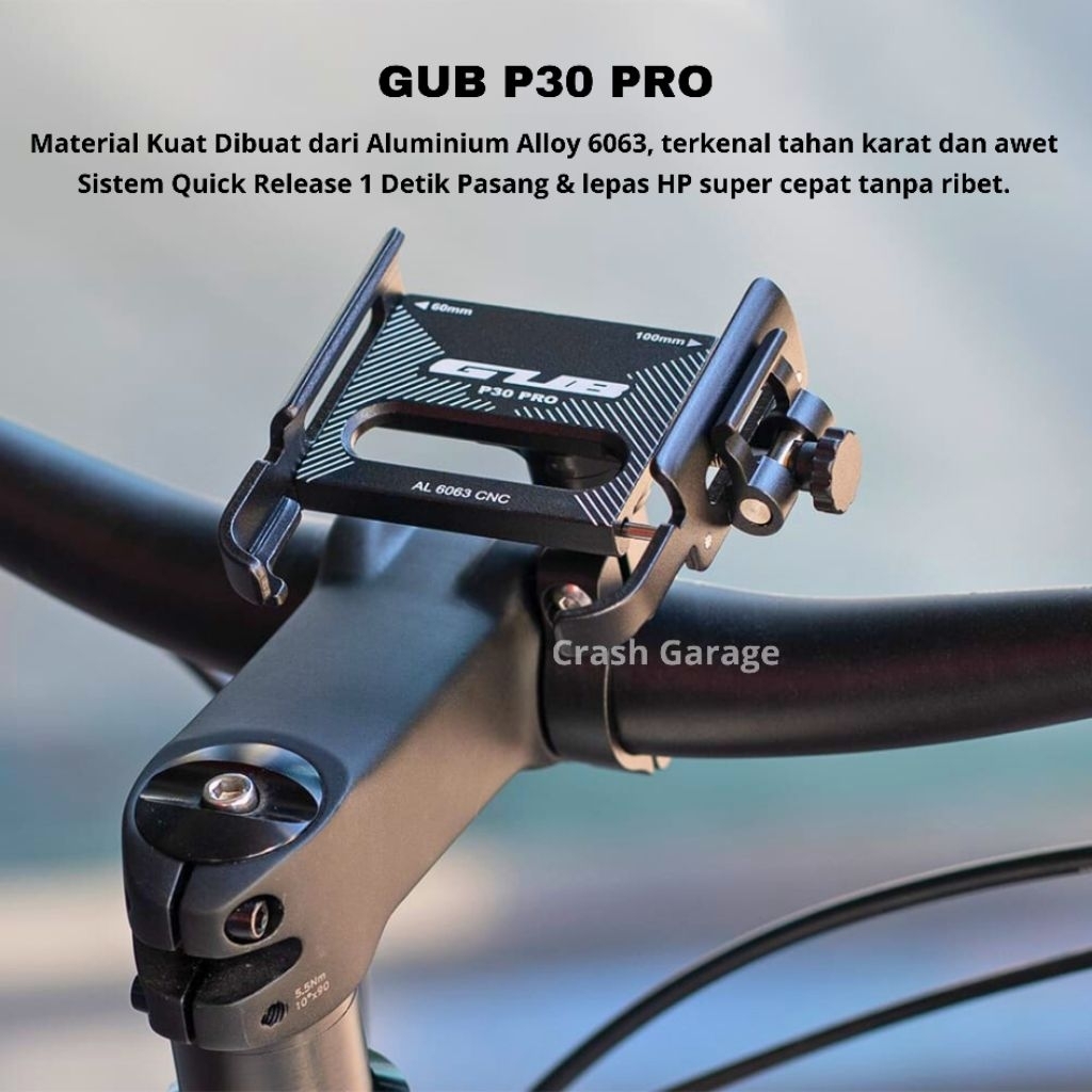 Gub P30 Pro Quick Release Alumunium Alloy Holder Hp Motor Full Besi Dudukan Ponsel Tempat Handphone Sepeda Motor Tataka