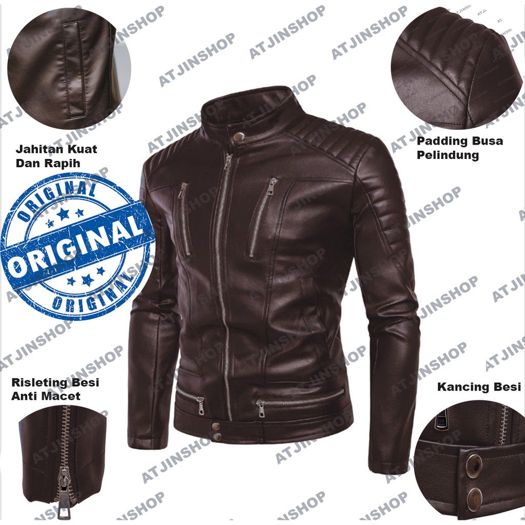 Jaket kulit Motor Pria Bikers Board Man (BBM) Bahan Vienna 100 PERSEN Full Black dan Full Brown]