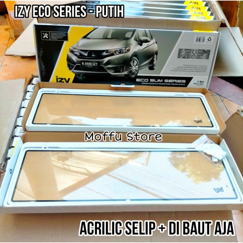 Izy Putih Dudukan Tempat Plat Nomor Mobil Acrilic Selip Eco Slim Series Bingkai Frame Cover Nomer Tatakan