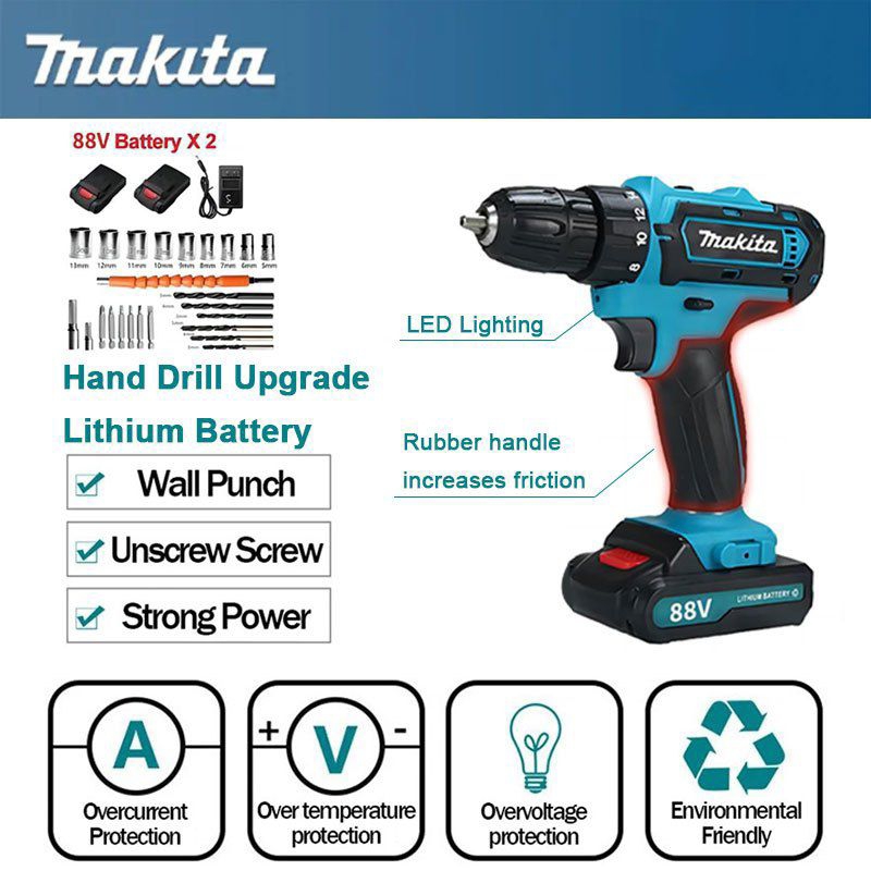 Mesin Bor Makita Set 88v 10mm Bor Cordles Bor Baterai Impact Makita Multifungsi