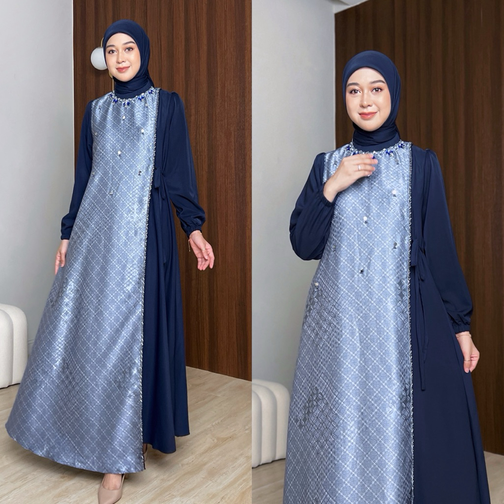 SERUNI DRESS GAMIS WANITA MUSLIMAH REMAJA DEWASA Ibu Ibu Payet Kondangan Motif Kombinasi Polos