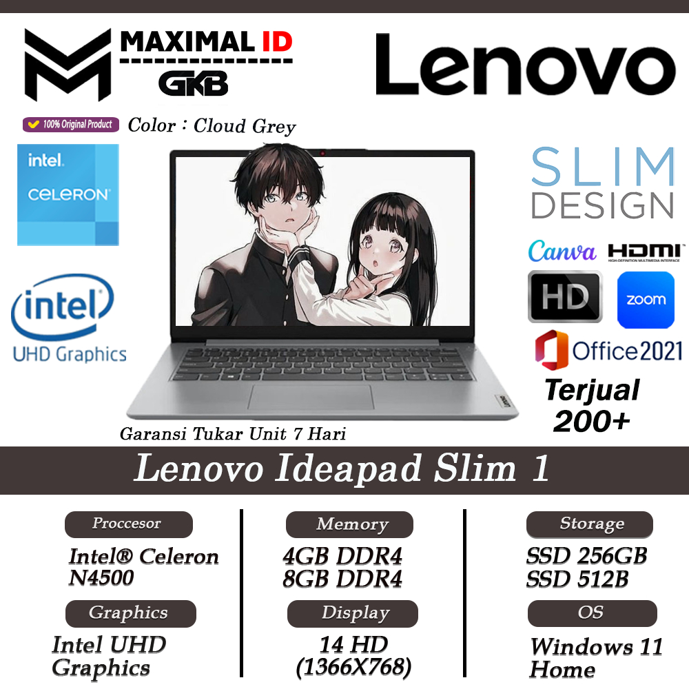 Lenovo Ideapad Slim 1 14 Intel N4500 8GB 512GB SSD 14 HD Windows11 Home Original