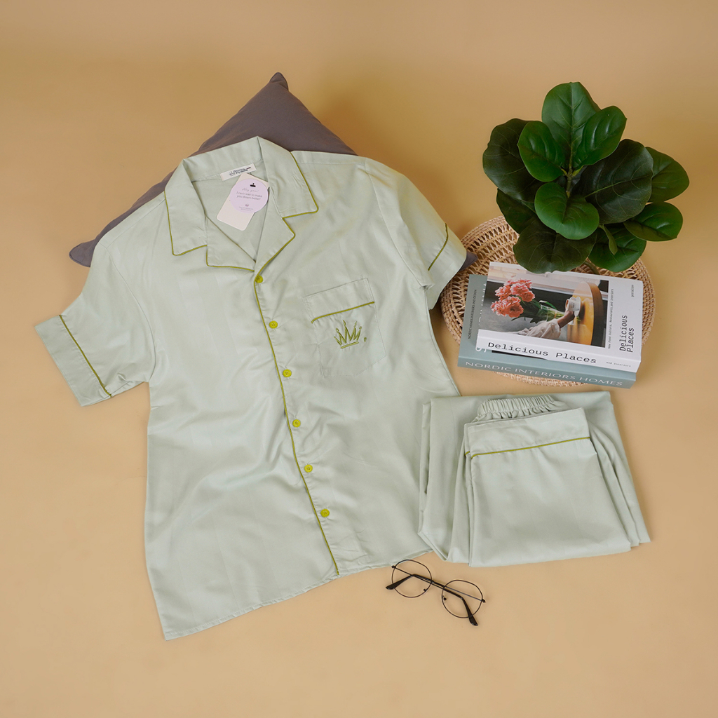 [BEST SELLER] Nyonya Piyama Poly Bamboo Set Celana Panjang Pria (Polos Herb Series) VOL 1