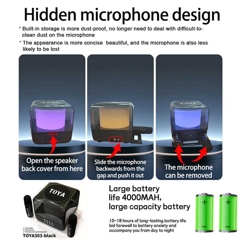 Toya Speaker Bluetooth Karaoke Rgb Warna Bluetooth Speaker 2 Mic Hd Sound Quality 4.0 Inci/100W