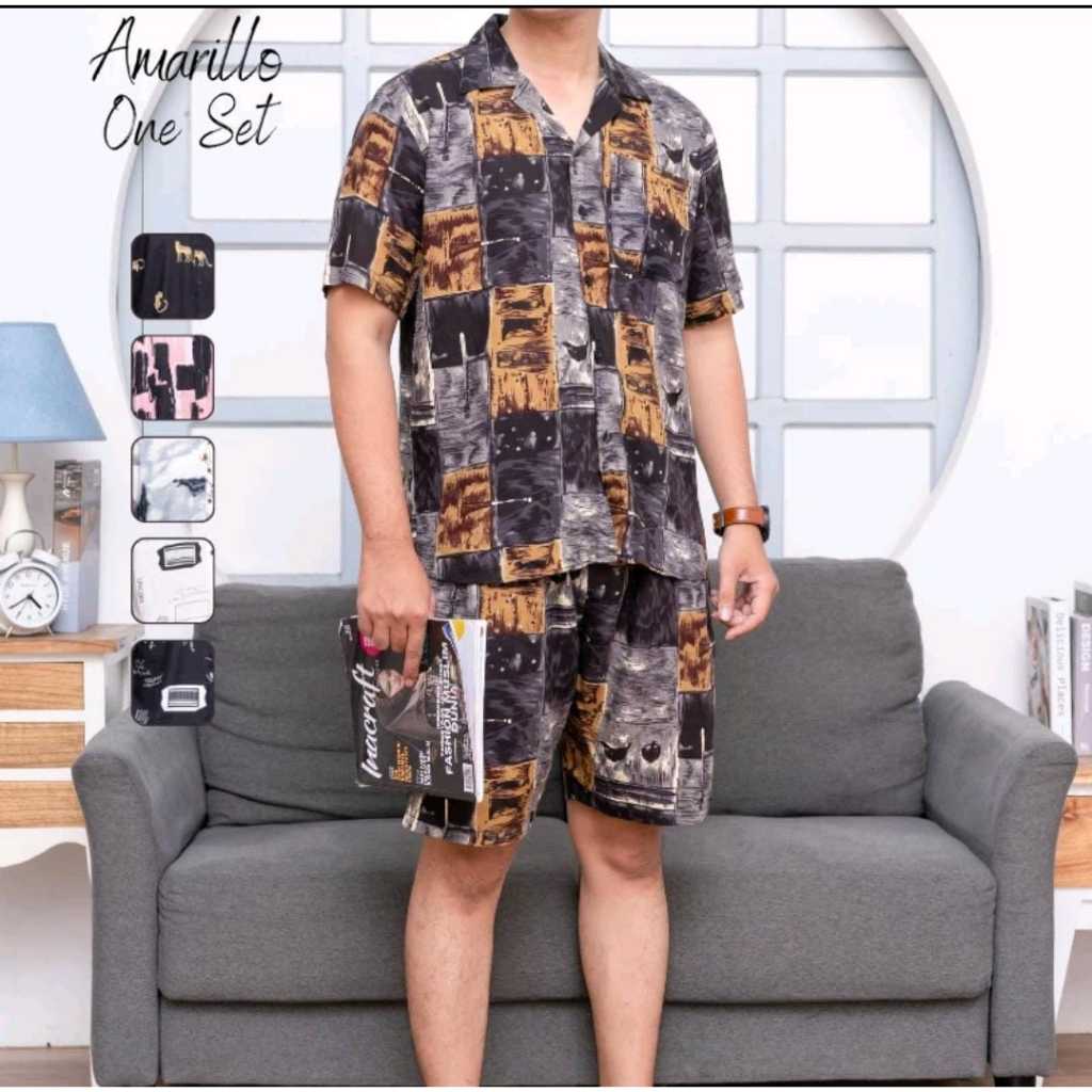 Set Kemeja Hawaiian Printing | Kemeja Oneset | Pajamas Pria | Oneset Rayon | Hawaian Set | Oneset Amarilo