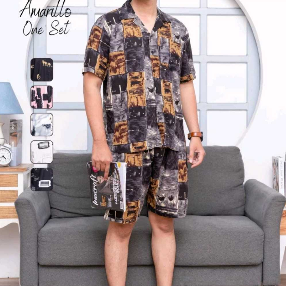 Set Kemeja Hawaiian Printing | Kemeja Oneset | Pajamas Pria | Oneset Rayon | Hawaian Set | Oneset Amarilo