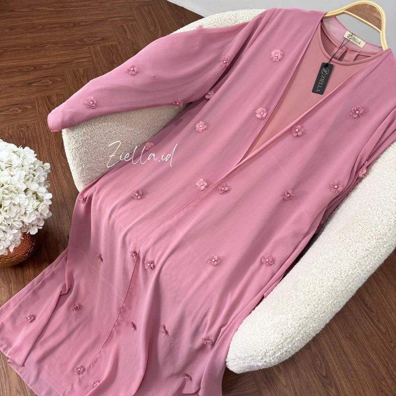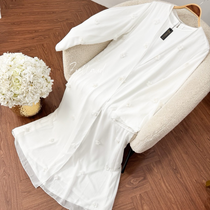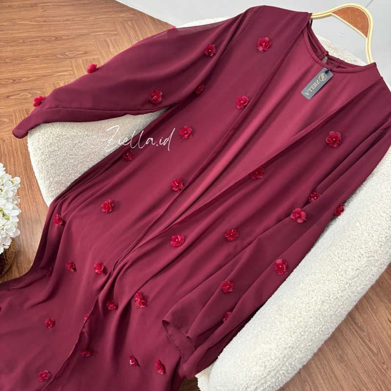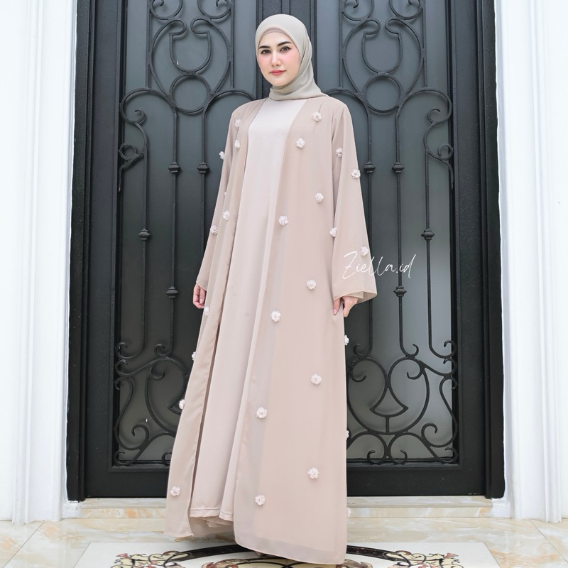 Ziella - Fatimah Dress Abaya 2in1 Outer dan Inner With Bunga Organza 3D bahan Ceruty Babydoll Jersey Abaya Adem Nyaman Dipakai Tidak Menerawang
