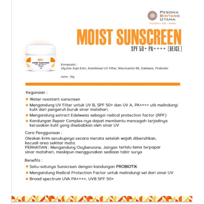 Pbu Moist Sunscreen Spf 50+ Pa++++Beige (6 Pcs)/Cream Wajah/Original 100 PERSEN