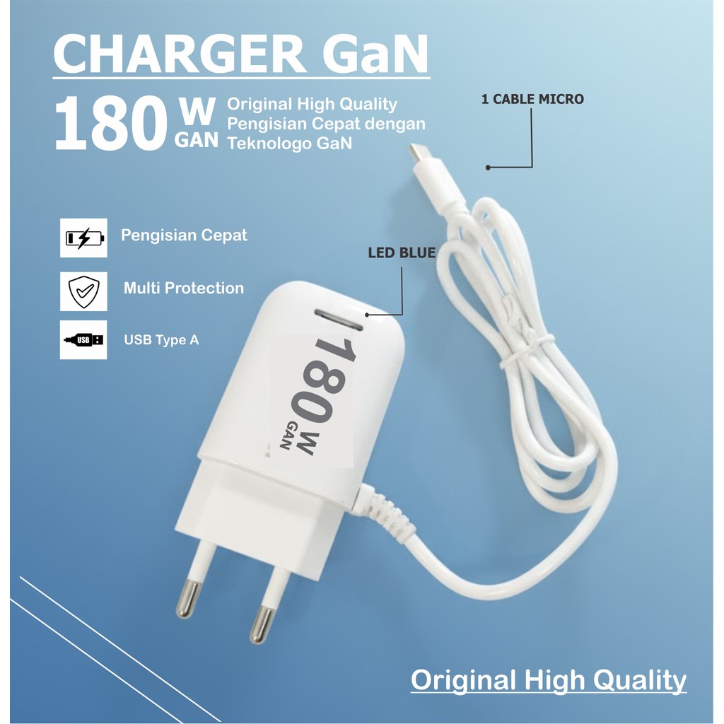 [Star] Charger GAN 180W Pengisian Daya Cepat 1 Port USB + Kabel Data Micro Quick Charging Fast Charging ONLY