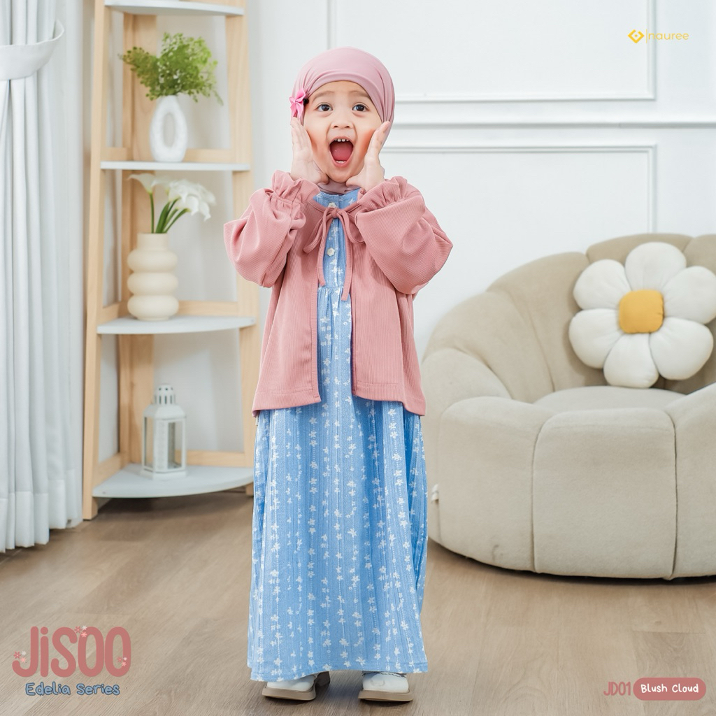 Nauree JISOO EDELIA SERIES Usia Anak Tanggung Gamis midi dress Cardigan Outer Korean Style syari muslimah Usia 1-16 Tahun