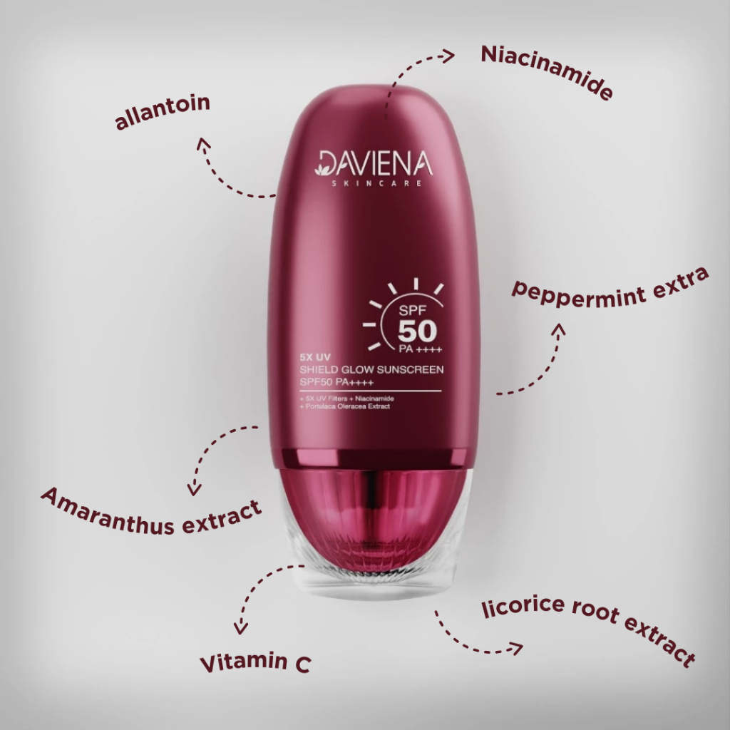 Daviena Skincare - 5X Uv Shield Glow Sunscreen Spf50 Pa++++ 30Ml | Sunscreen | Face Sunscreen | Sunscreen Wajah | Tabir