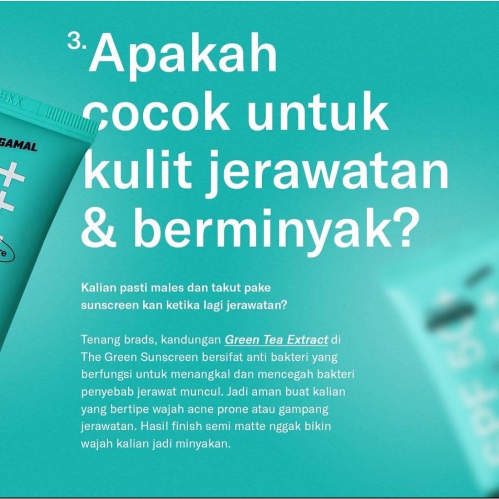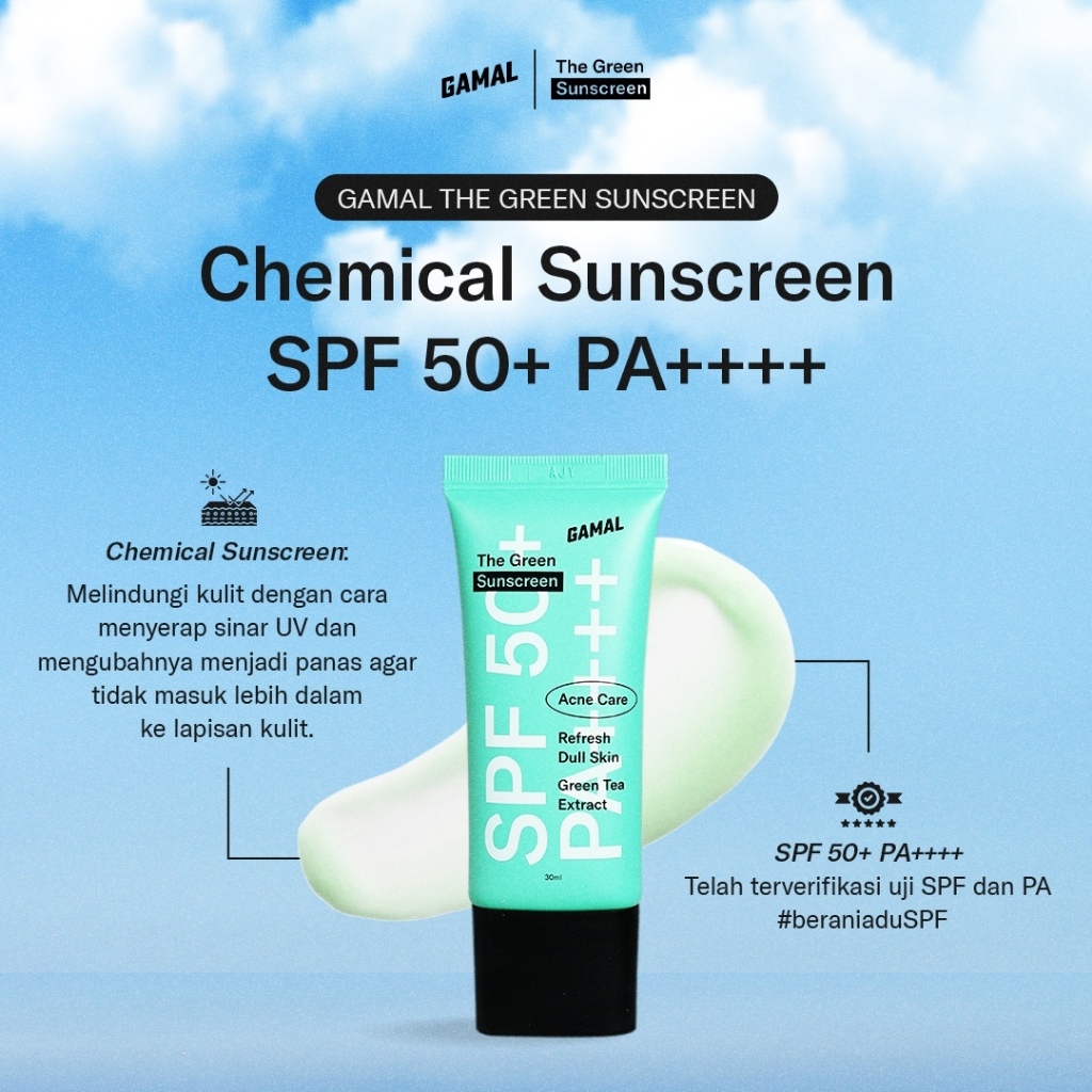 Gamal | The Green Sunscreen Spf 50+ Pa++++ | 30Ml | Untuk Melindungi Kulit Dari Panasnya Matahari