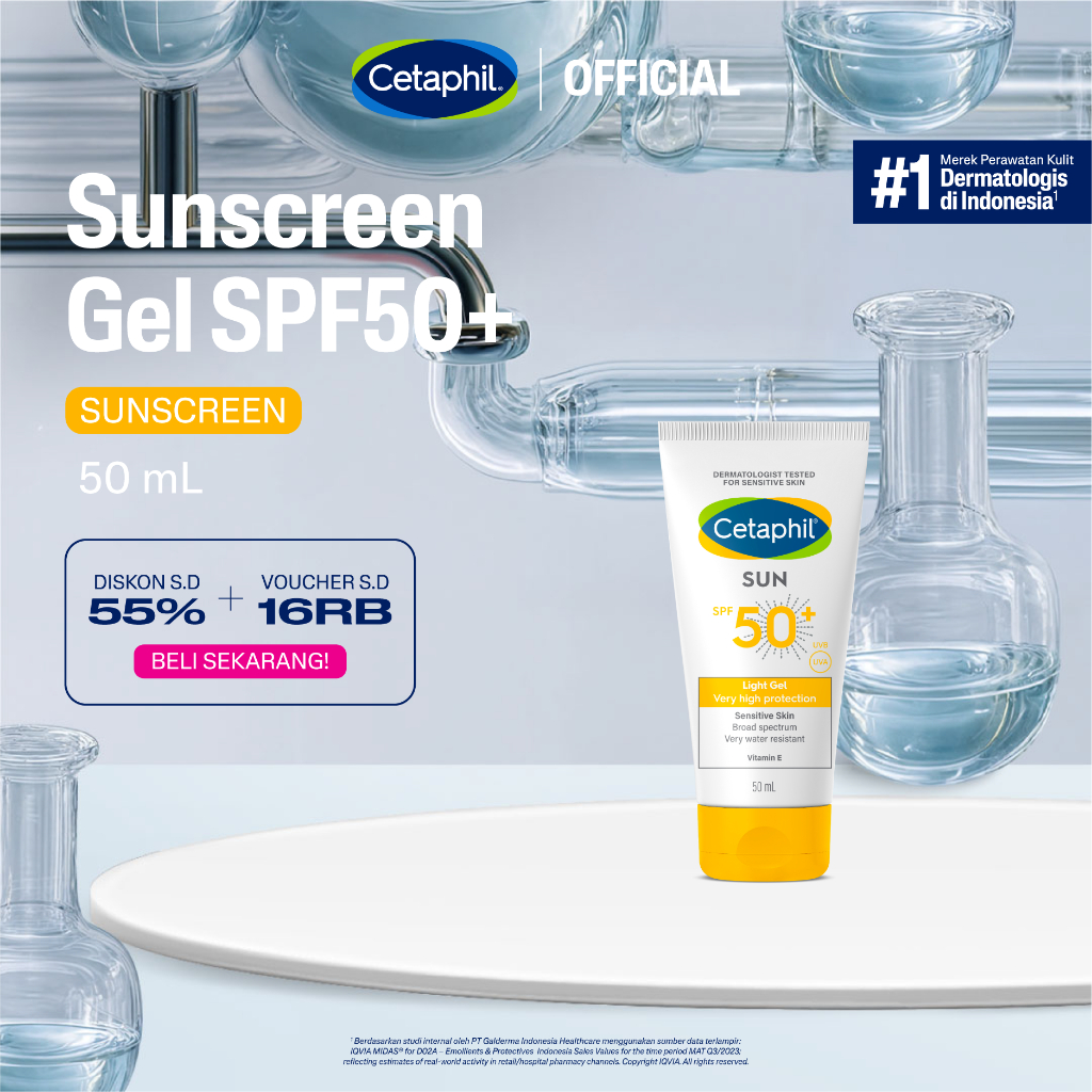Cetaphil Hybrid Sunscreen Spf50+ Light Gel 50Ml Untuk Kulit Sensitif Dengan Titanium Dioxide
