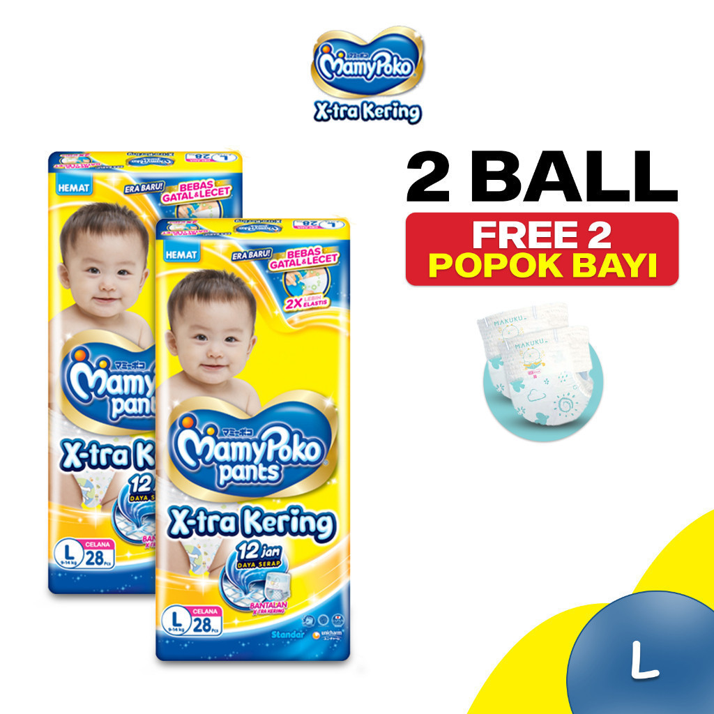 Mamyko 2 Ball Gratis 2 Pcs k Bayi Ukuran NBS44 - XXL24 Diapers Tipe Perekat & Celana Xtra Kering