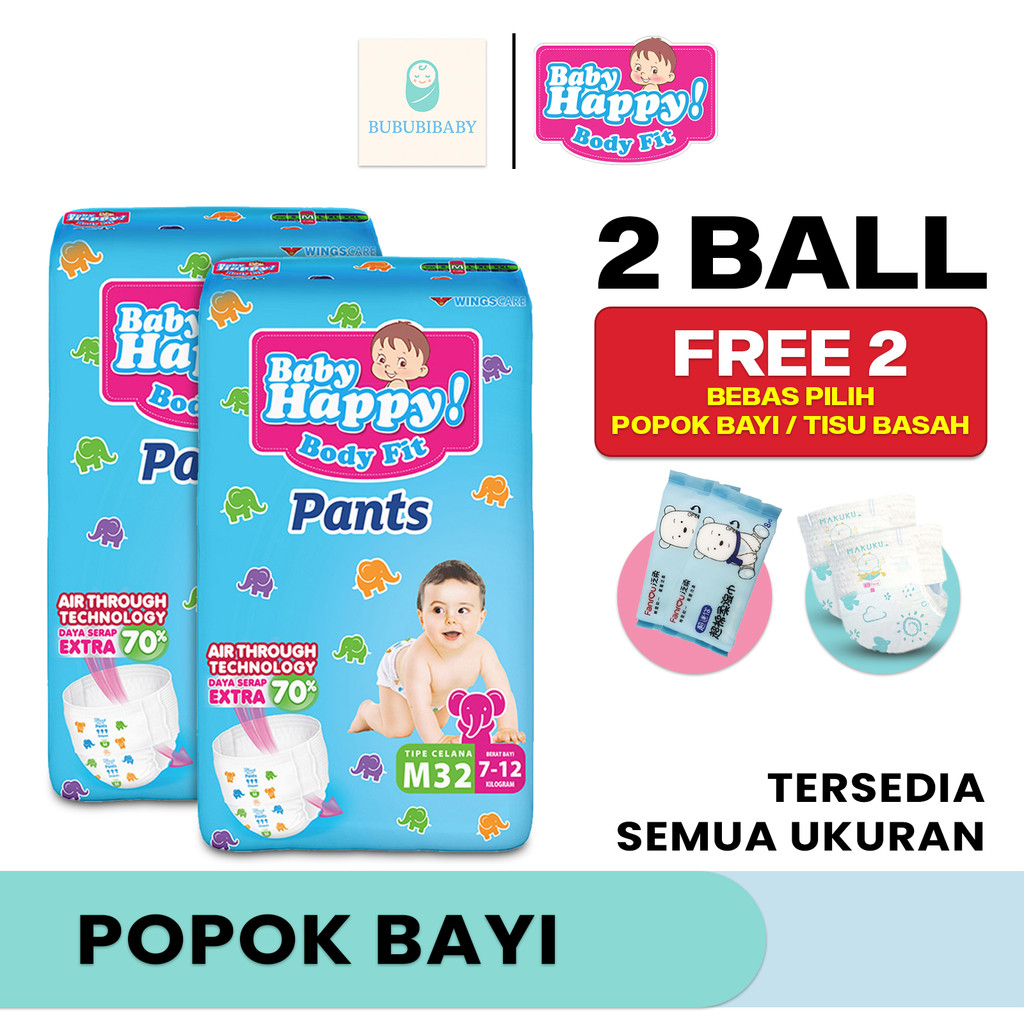 2 Ball Gratis 2 Pcs Baby Happy Body Fit Pants Tipe Celana Ukuran S38 - XL26 Diapers k Bayi