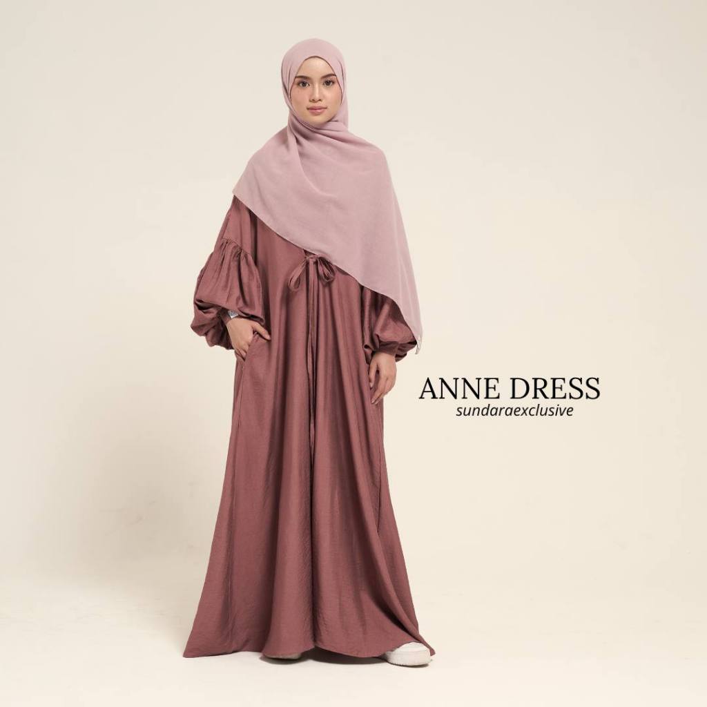 Anne Dress by Sundara Gamis Balon Linen Simpel Wanita Muslimah Eropan Look Eropa