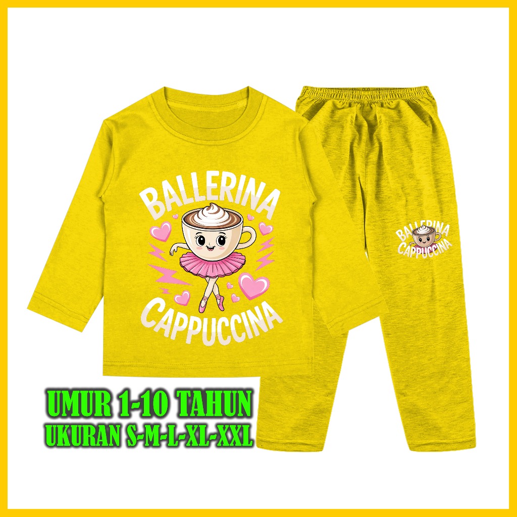 Setelan Baju Tidur Anak Gambar Ballerina Cappuccina Piyama lengan Panjang Celana Panjang 1 - 10 Tahun