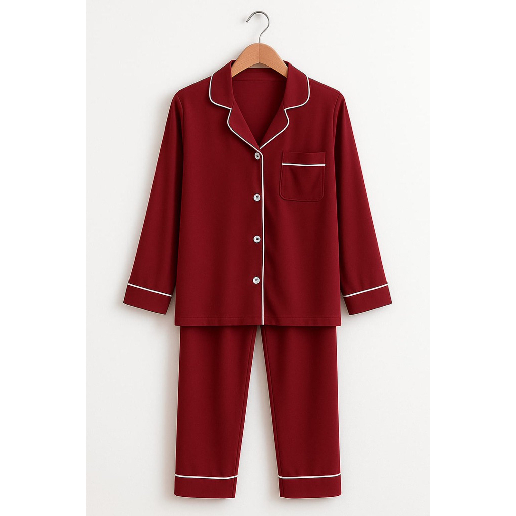 Set Piyama Dewasa Pria Polos Lengan Panjang Celana panjang Nyaman |Set Baju Tidur Pria Polos Panjang
