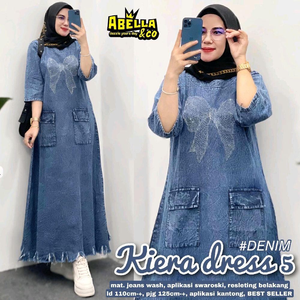 Keira Midi#1 #2 #3 #4 #5 • Midi Dress Jeans Wash Rawis Aplikasi Swaroski Tempel Terbaru Viral • Matt Jeans Wash Premium