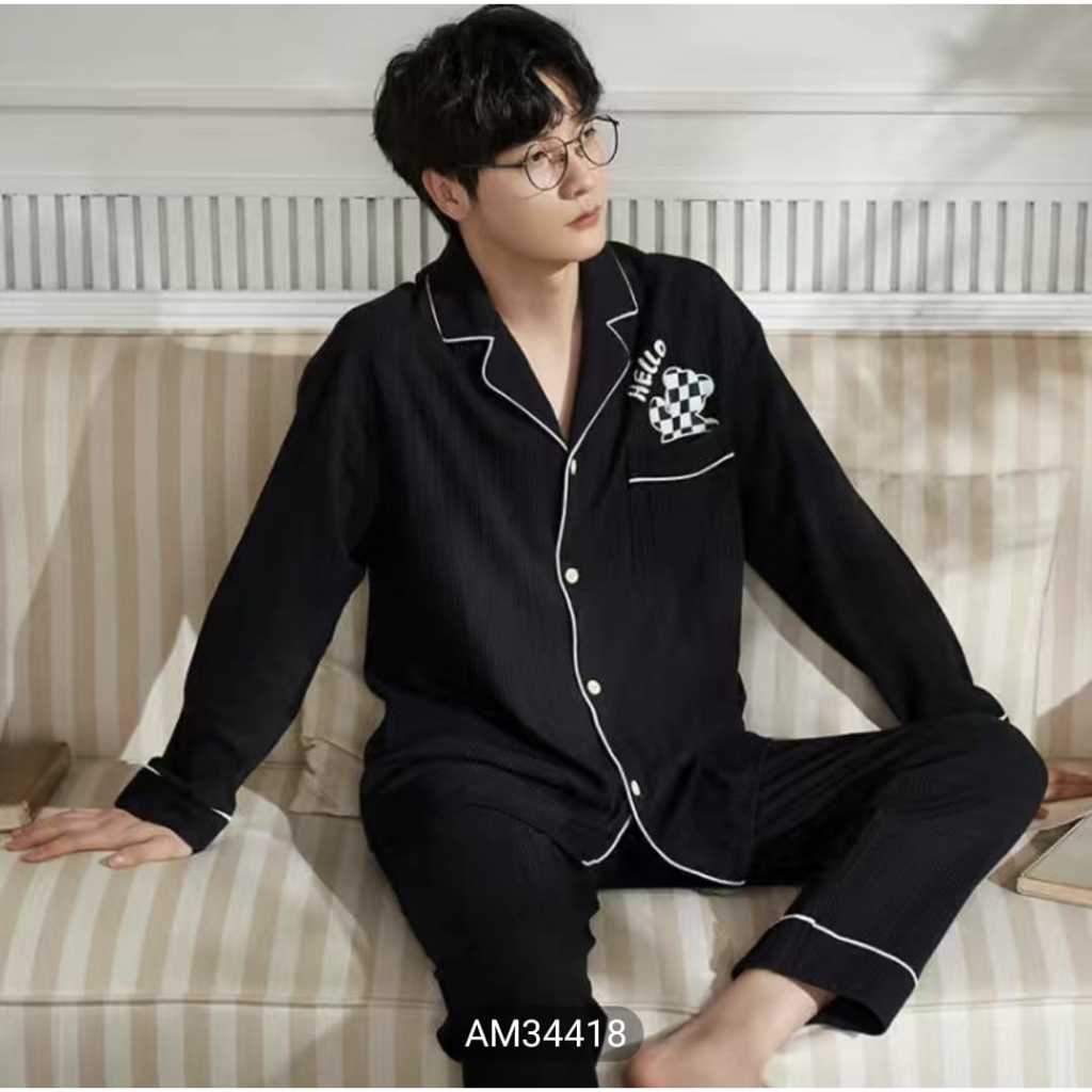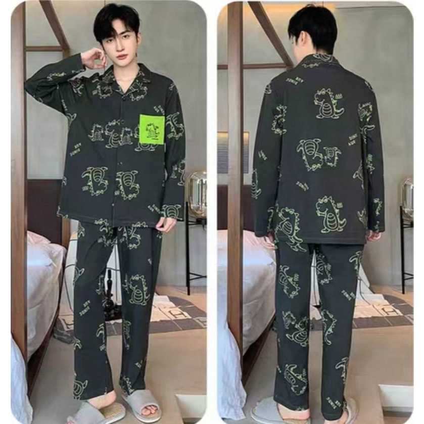 Baju tidur Piyama cowok import bahan kaos spandek tebal dan adem lengan panjang celana panjang