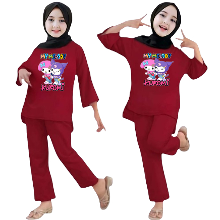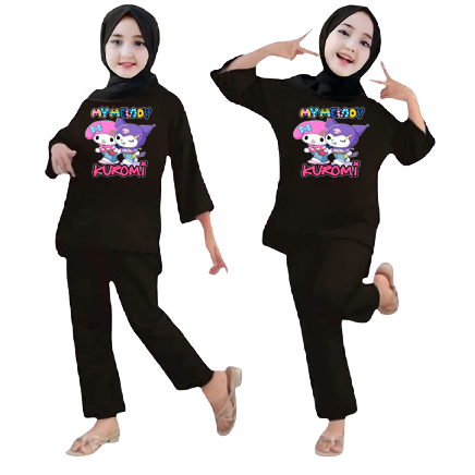 Pakaian Set Cel Anak Perempuan Usia 2-12 Tahun Bahan Katun BabyTerry Motif Kuromi Melody
