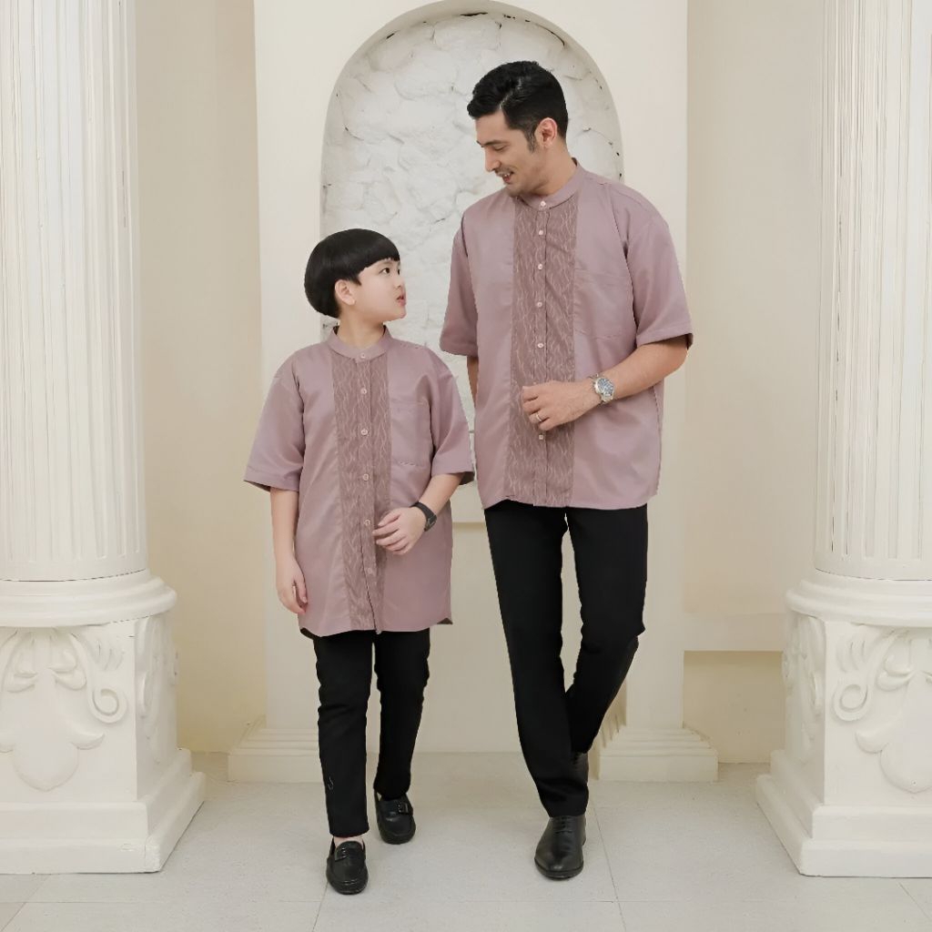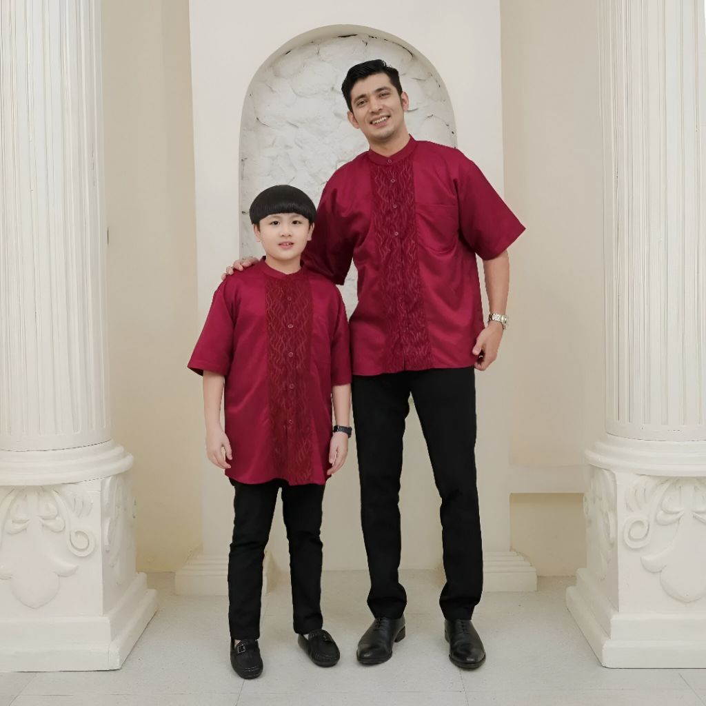 Baju Koko Couple Ayah Anak Laki Laki Lengan Pendek | Warna Mahogany Terbaru 2026