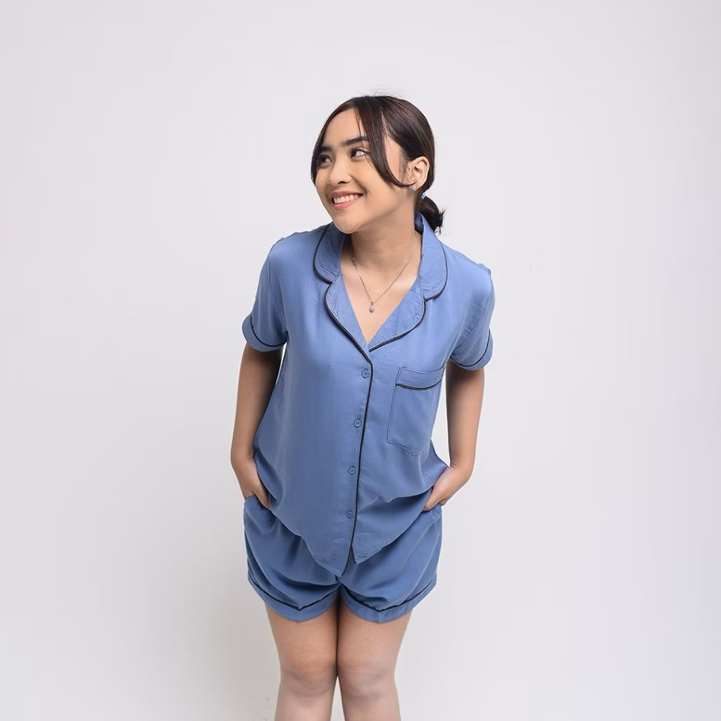 Lumina Piyama One Set Baju Celana Pendek Rayon Varian Warna Setelan Wanita Baju Tidur rayon twil