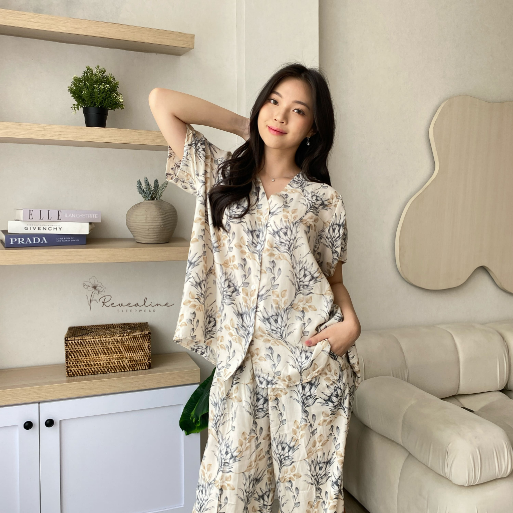ALURA - Set Piyama Lengan Pendek Celana Panjang Premium Wanita|Baju Tidur Rayon Busui Bumil Friendly
