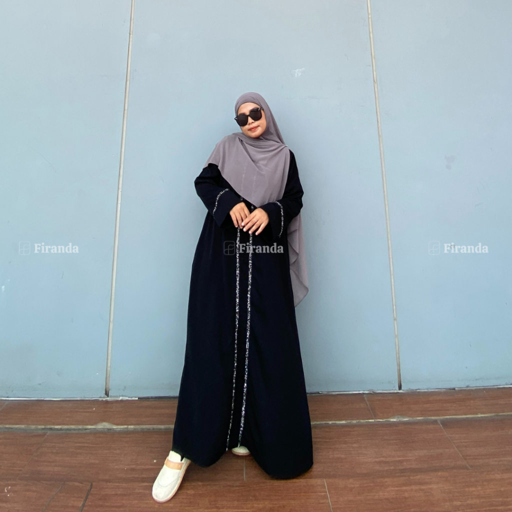 Firanda Abaya Nazwa - Gamis Arab Hitam Wanita Dewasa Mewah Payet Basic Dress Umroh Lebaran Terbaru