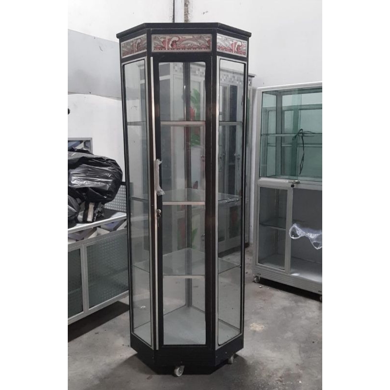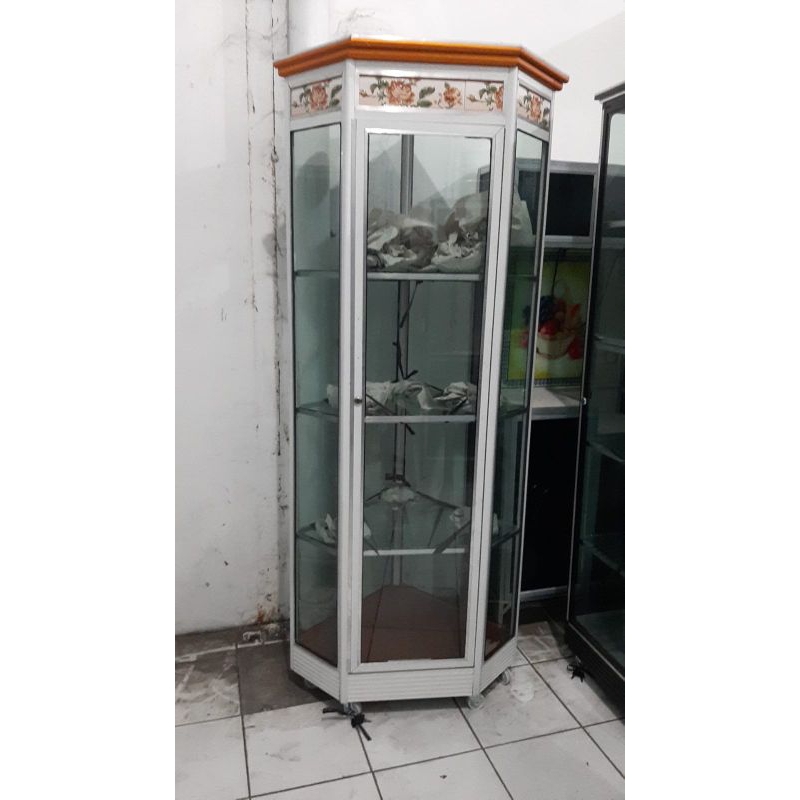 Lemari Kaca Pojok Hias Dengan Roda