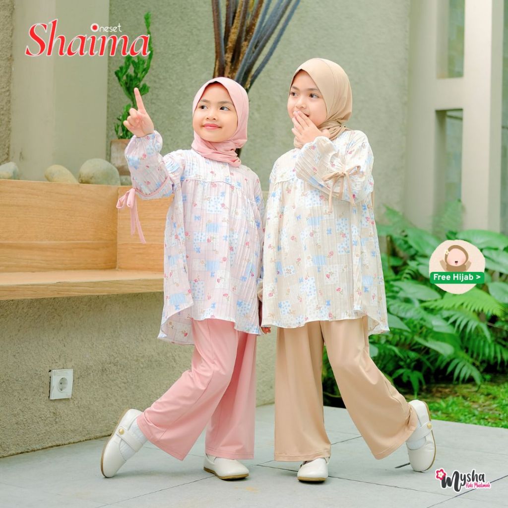 Setelan Anak Muslim Mysha Kids Muslimah Shaima Oneset Anak Jersey Premium 2-11Th Free Hijab