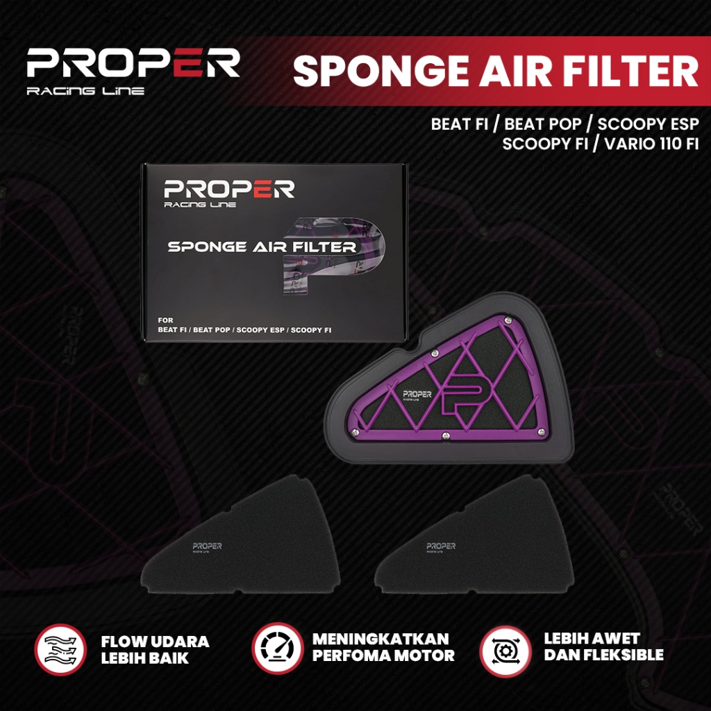 FILTER UDARA GEN 2 HONDA BEAT FI BEAT POP SCOOPY ESP SCOOPY FI VARIO 110 FI PROPER RACING LINE